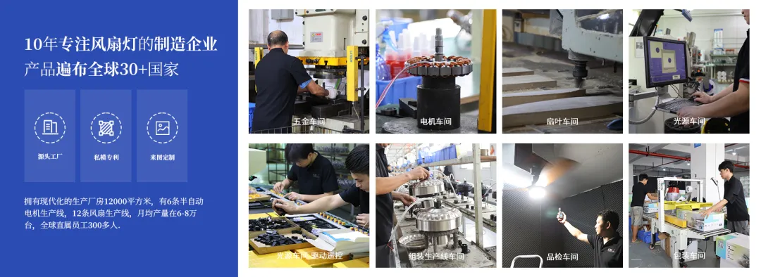 坐拥4万平方米的现代化生产基地,布局4条半自动电机生线及6条专业风扇灯总装线,实现月均产能10万台的高效输出。超过300名专业员工的全球团队,已成功推出500余款产品,以规模化的制造力和稳定品质,持续引领行业发展。