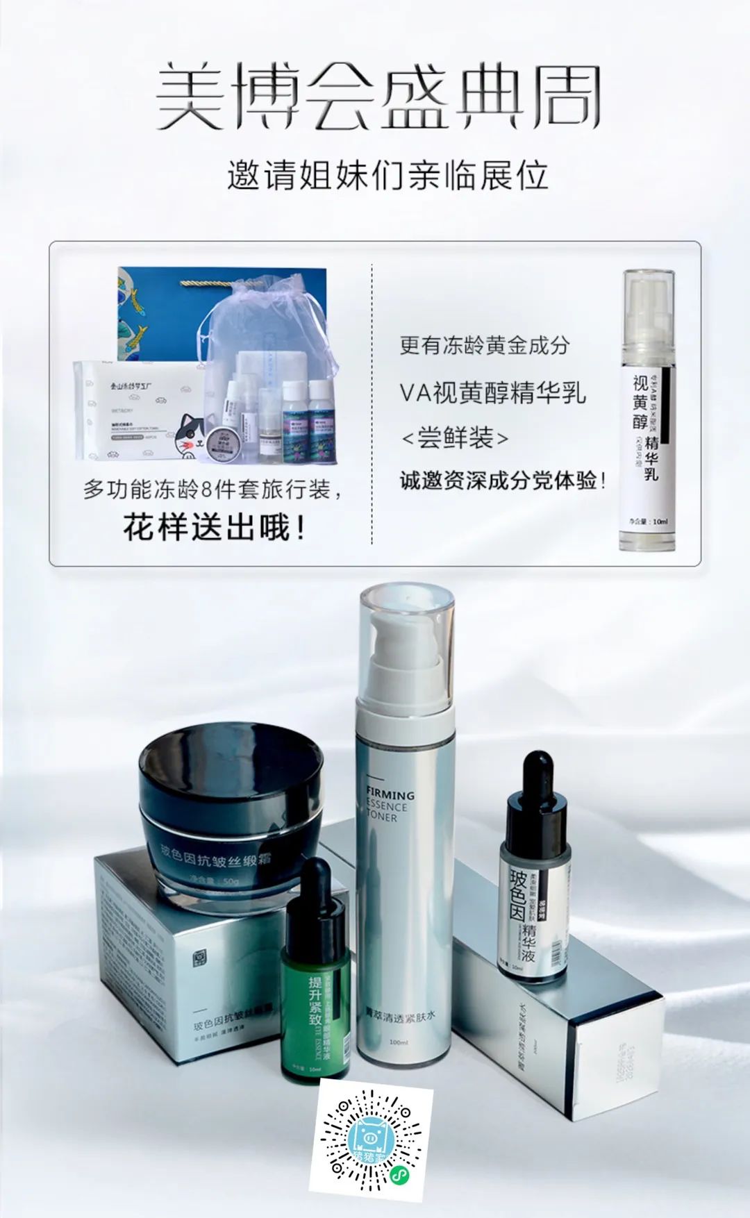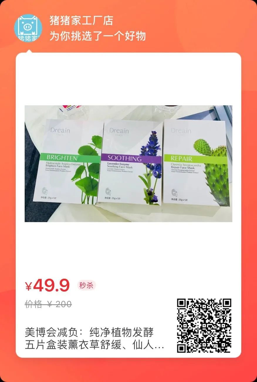 美博会现场扫码送好品了:还有现场减负49.9元10片零防腐纯植物发酵原浆面膜,欢迎光临!