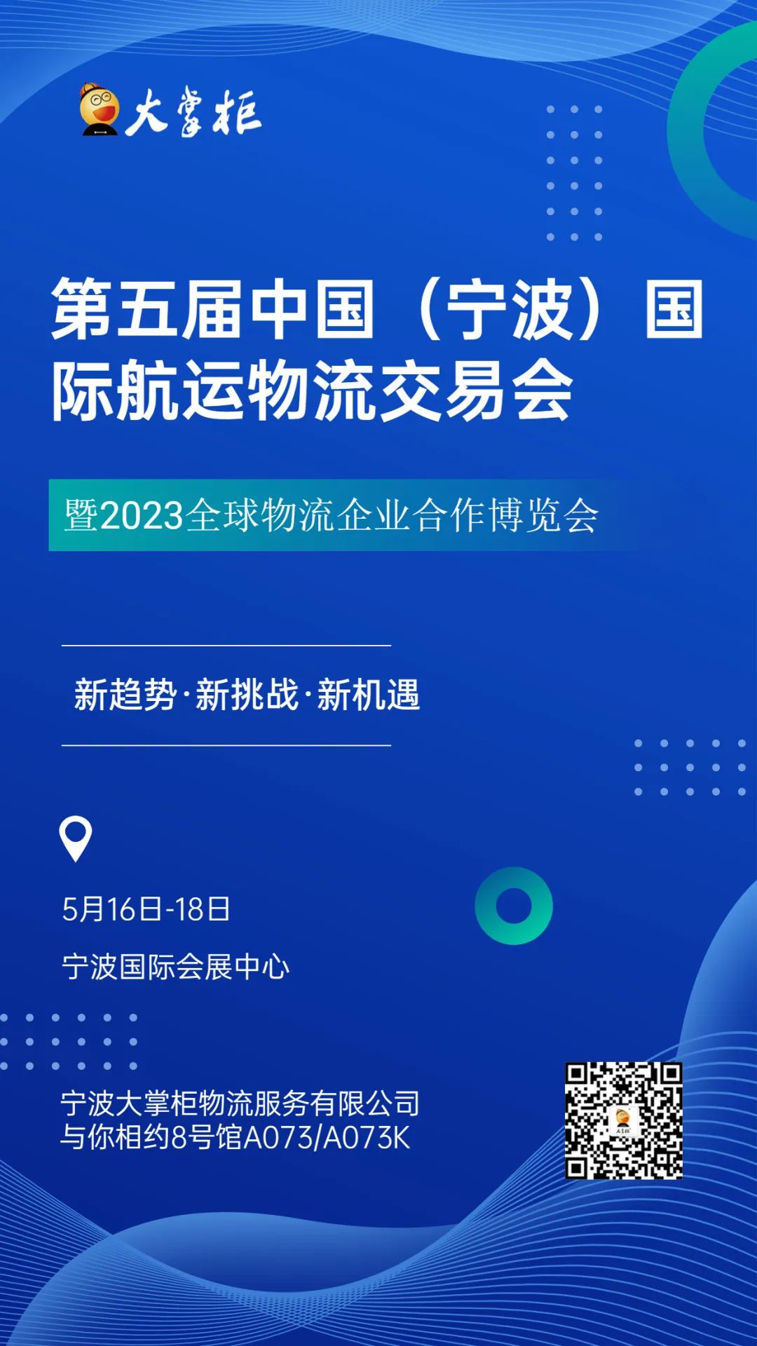 大掌柜参加此次博览会,并参展于现场8号展馆A073/A073K,欢迎大家前来沟通交流,大掌柜会带着中大型物流公司货代系统解决方案,给大家演示,在市场下行的时期,我们的营销服务门户是如何帮助货代企业留存客户、管控成本和风险、提升客户服务体验!