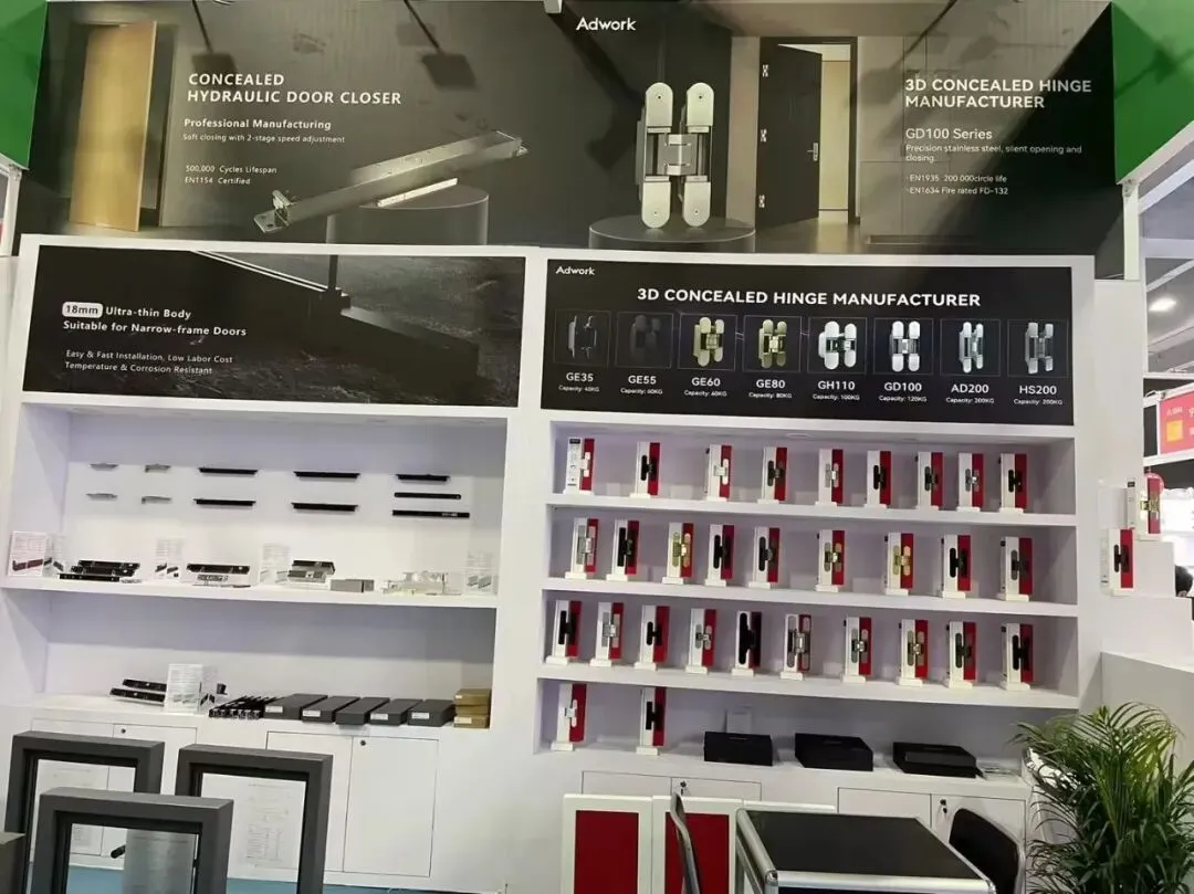 Adwork participated in the fair with its core product, the 3D invisible hinge, demonstrating its exquisite craftsmanship and advanced technological capabilities, which attracted considerable attention and recognition from overseas buyers.