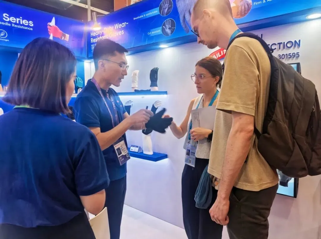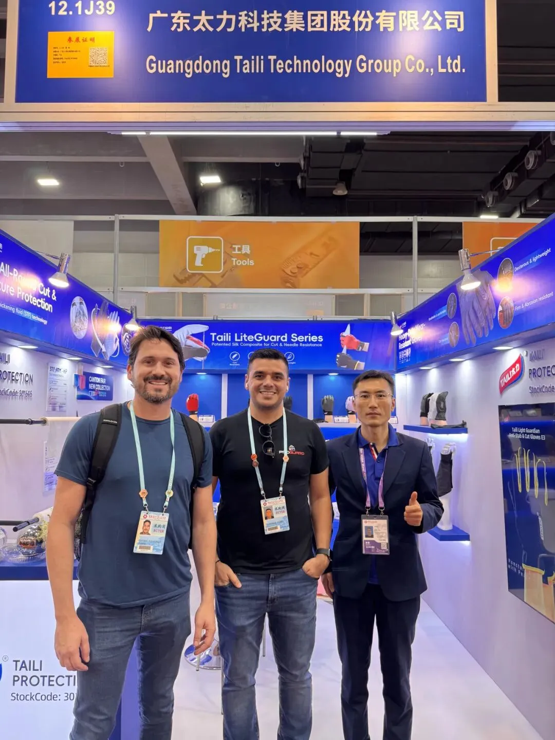 展会现场人气爆棚,太力展区前始终人头攒动,前来咨询、体验、洽谈的客商络绎不绝,不少采购商带着明确的合作意向专程而来。有采购商在试戴完太力防护手套后忍不住连连称赞:“手感那么轻薄,没想到防刺效果这么好!”