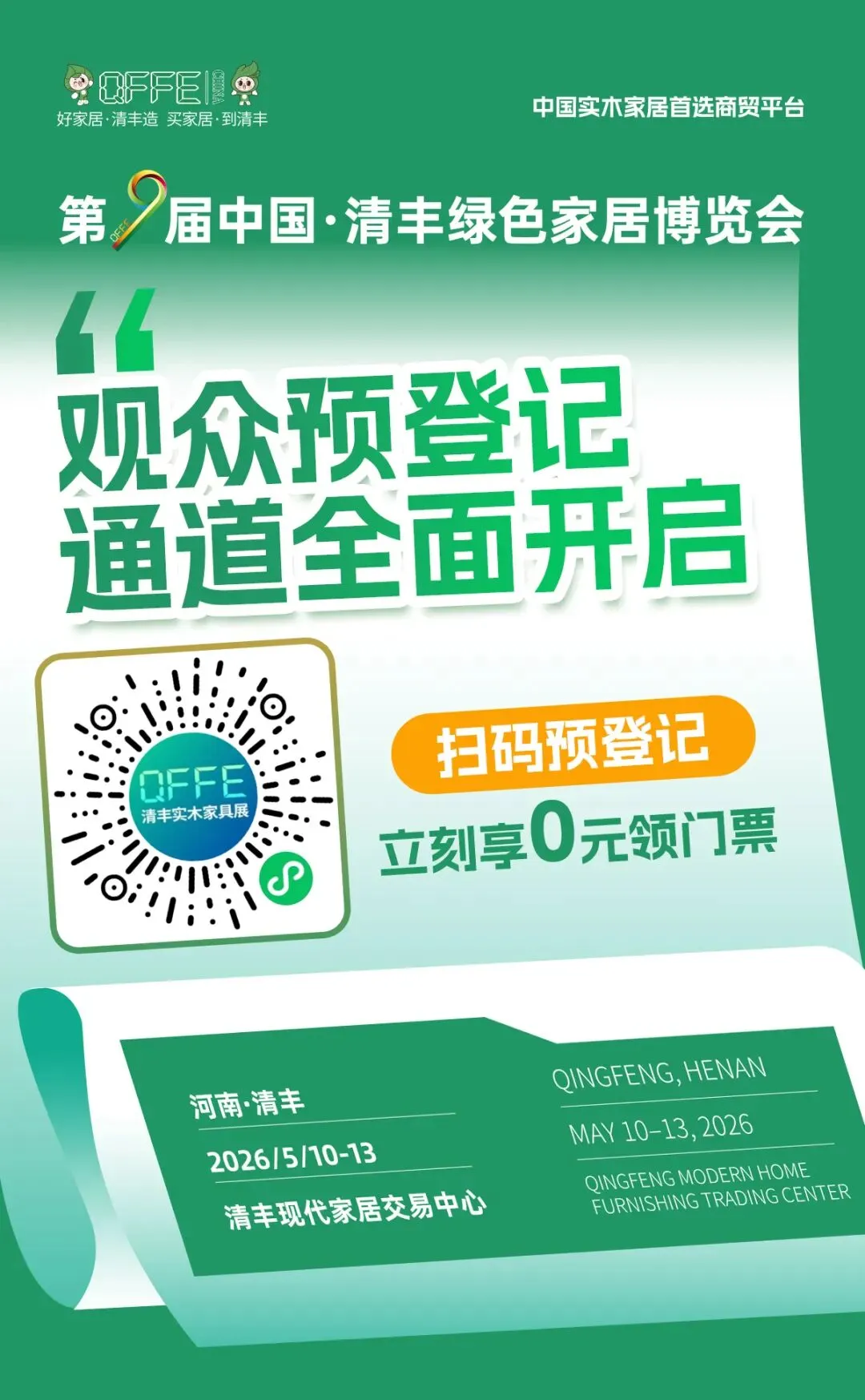 2026年5月10-13日,第九届中国·清丰绿色家居博览会将在清丰现代家居交易中心隆重启幕!