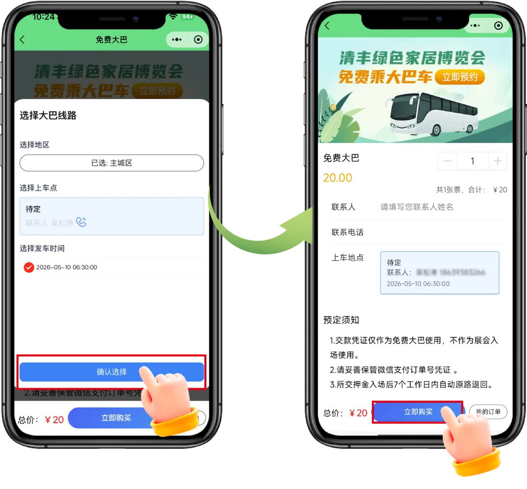 1.大巴及住宿需在完成观展报名后,在展会小程序提前申请;