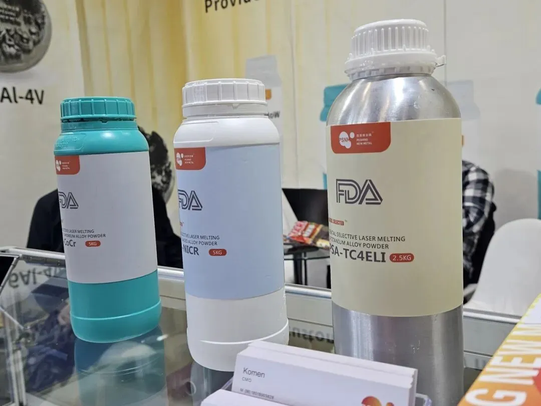 盘星新金属深耕新型金属材料研发生产,拥有自主核心知识产权,现有产品广泛应用于航空航天、3C电子及医疗器械等行业。本次展会重点展出了医疗齿科专用金属粉末系列,包括: