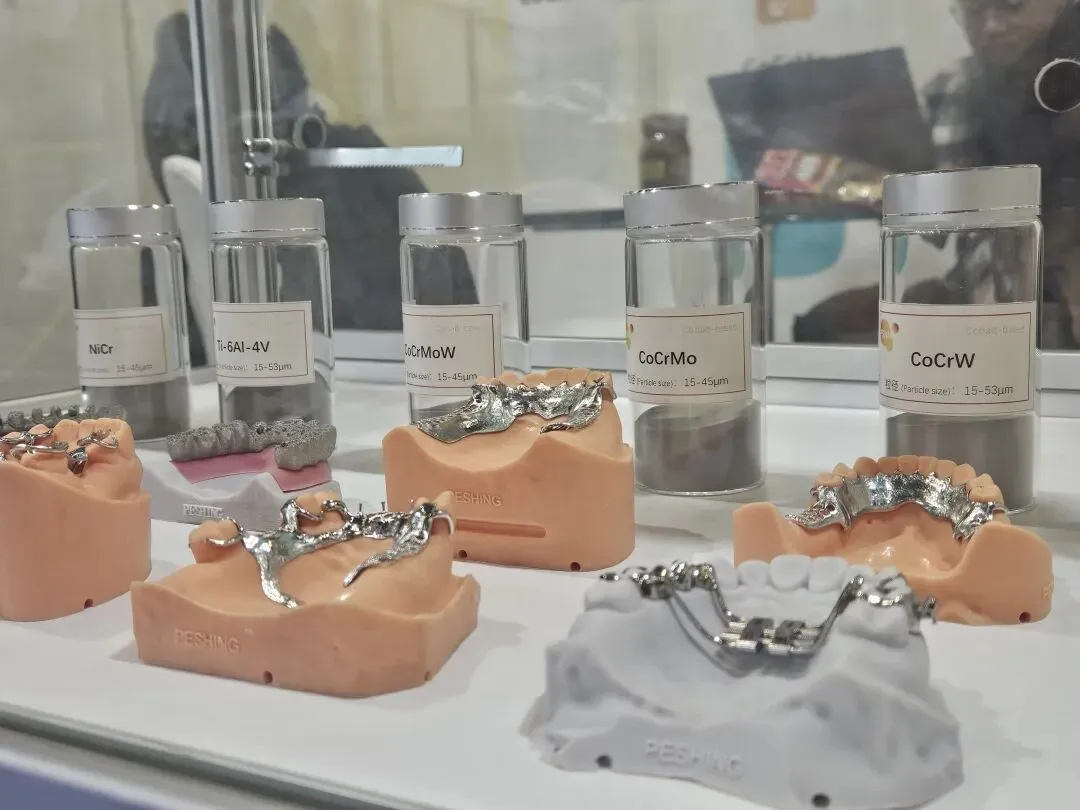 除了高品质的金属粉末产品,盘星新金属还现场展示了通过SLM增材制造技术打印的齿盘牙模修复体。这些修复体致密度高、组织均匀细小,性能和可加工性均优于传统铸锻件。现场的实物展示让客户直观地感受到了盘星粉末从原料到成品的卓越性能,无论是烤瓷冠还是活动支架,打印效果均获得一致好评。