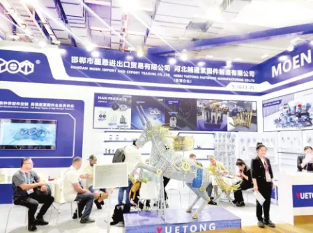 展会期间,永年展区亮点纷呈。邯郸市墨恩进出口贸易公司与河北越通紧固件制造公司打造联营展位,用紧固件制作“马”主题工艺品,诠释产品创意与产业融合之美;固耐安公司作为永年区唯一获得品牌展位资格的企业,特设品牌形象展区,展示高端产品与核心技术,发挥标杆引领作用。