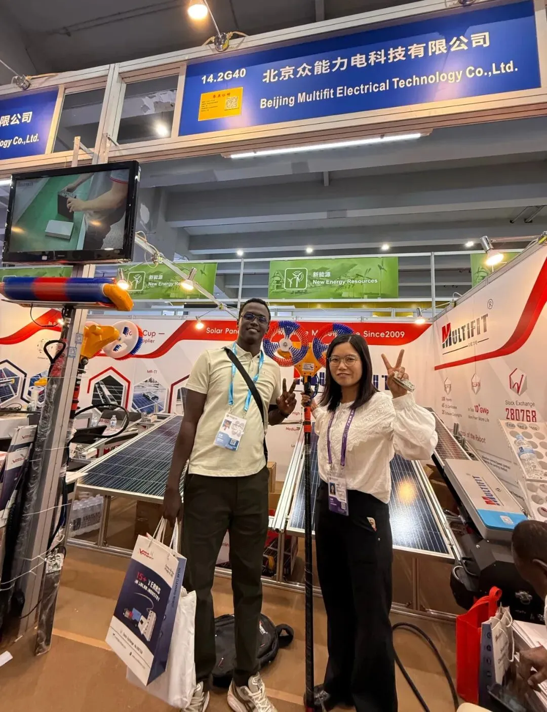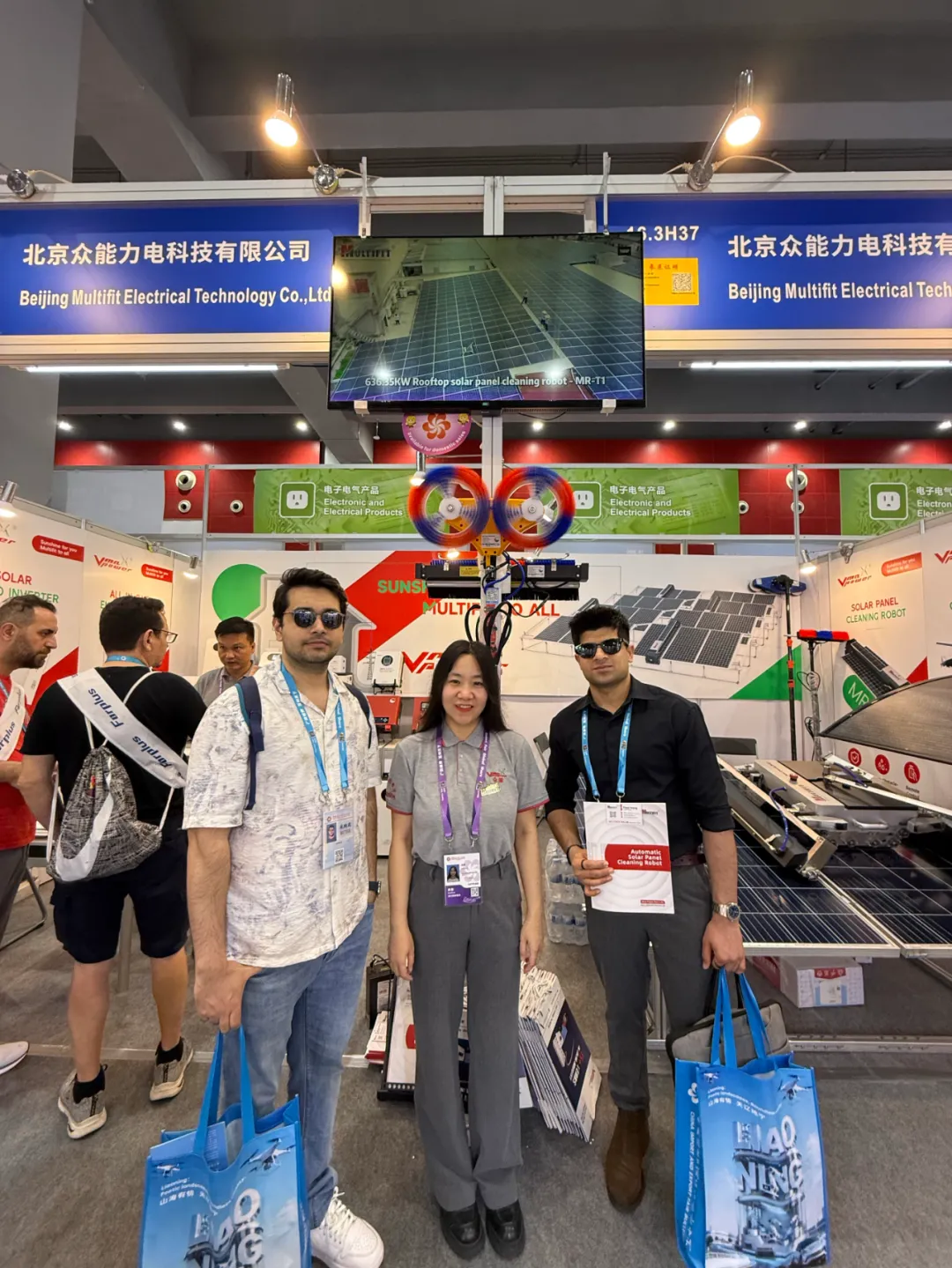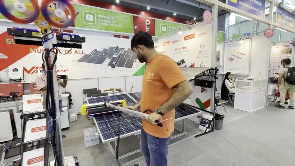 展会期间,众能的明星产品MR-G3全自动光伏清洁机器人、MR-T1便携式清洁设备成为现场焦点。现场设置专属演示环节,客商们亲眼见证MR-G3自动清洗一整排光伏板的高效作业,亲手体验MR-T1的轻便操作,直观感受智能清洁设备为光伏运维带来的便捷与高效。