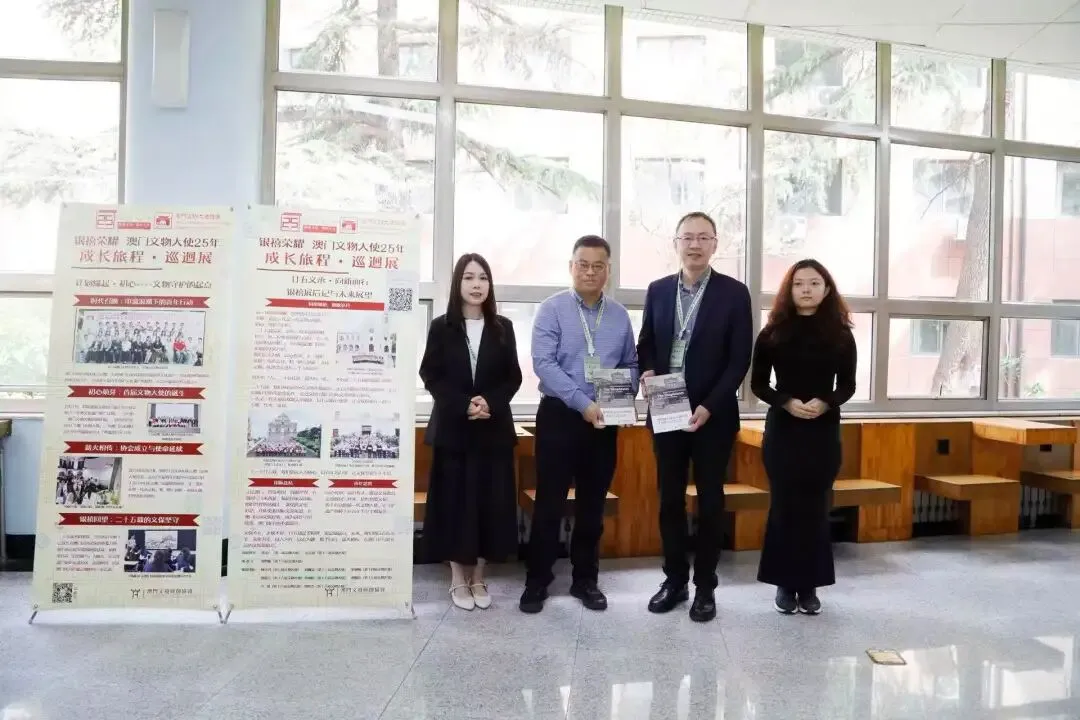 「2026年度世界遺產青少年教育基地工作會議」於4月19日在山東省濟南市山東大學國際教育學院報告廳舉行。本會副會長陳彩虹及澳門文遺研創協會行政副總監梁凱欣攜「銀禧榮耀·澳門文物大使25年成長旅程·巡迴展」赴魯參會。會議主辦單位聯合國教科文組織亞太地區世界遺產培訓與研究中心蘇州分中心主任顧文華及山東大學國際教育學院、教師教育學院黨委書記姬銳觀展指導,並吸引全國各地25個基地代表及山東大學學生參觀交流。