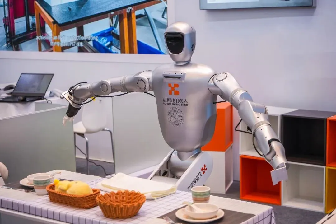 走进服务机器人专区,佛山企业广东汇博机器人有限公司展出的具身智能机器人、四足机器狗两款拳头产品成为全场焦点。具身智能机器人在现场“大显身手”,演示餐具归位、清扫桌面等家居场景以及遥操作数据采集,动作行云流水,吸引众多不同肤色、操着不同口音的海外客商争相体验与咨询,产品市场吸引力可见一斑。
