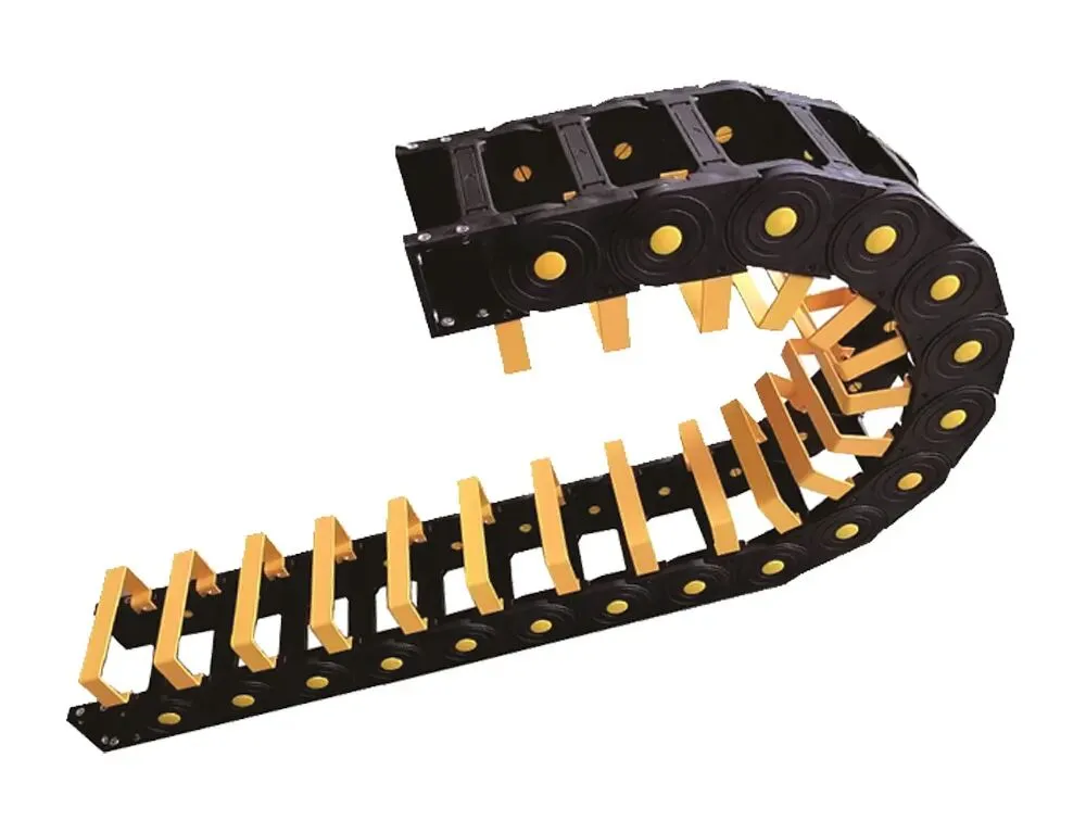 拖链用于保护电缆、油管、气管,随设备移动有序收纳,防缠绕拉扯、延长管线寿命。拖链广泛用于机床、自动化设备、工程机械、机器人等,适配各类往复运动场景。
