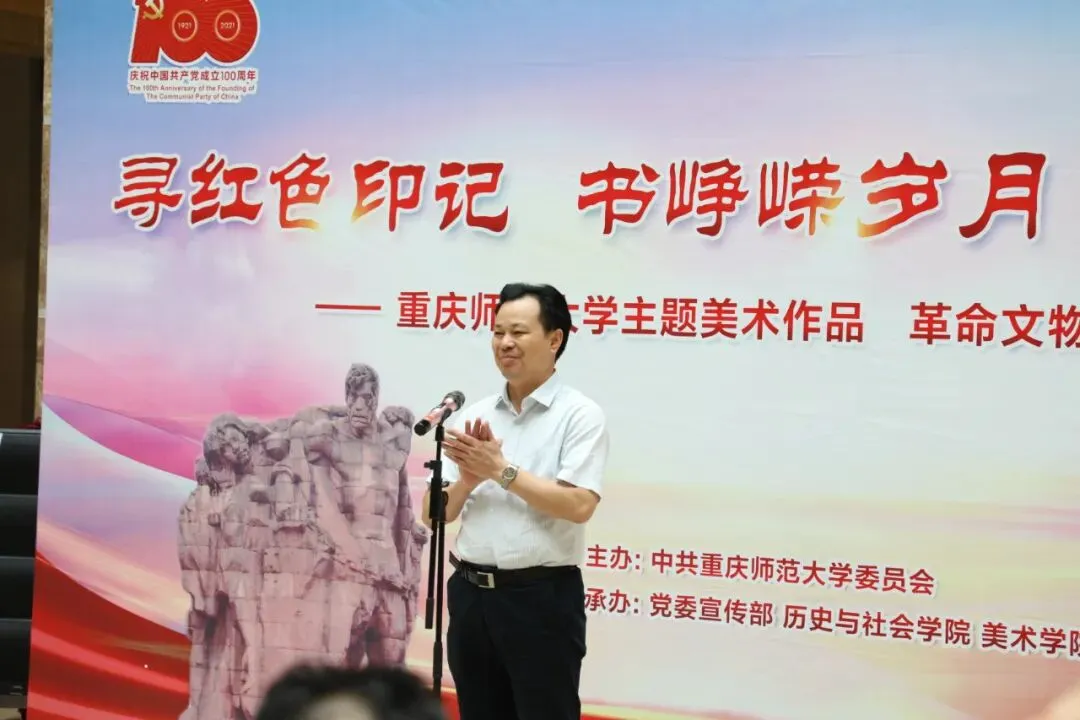 为隆重庆祝中国共产党成立100周年,中共重庆师范大学委员会主办,党委宣传部、历史与社会学院、美术学院承办“寻红色印记 书峥嵘岁月 展百年风华“——重庆师范大学主题美术作品暨革命文物里的党史·重庆(图片)展,重庆市的国家级和市级革命文物保护单位以图片的形式首次全面集中呈现。