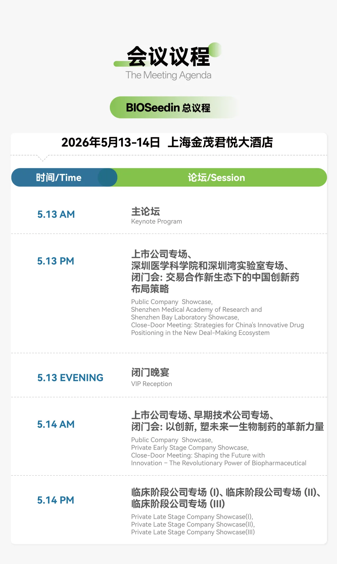 第六届BIOSeedin春季创新合作峰会将于2026年5月13日至14日(周三至周四)在上海举行,预计将汇聚800+企业,1500+位全球行业参与者,规划组织800+线下一对一会议,推动1000+资产对接。