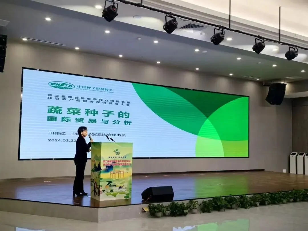中国种子贸易协会秘书长田伟红对《中国种业国际贸易交流概况》进行分享,介绍了中国种子贸易协会和蔬菜种业概况,对中国蔬菜种子进出口贸易情况和机遇挑战进行了分析。