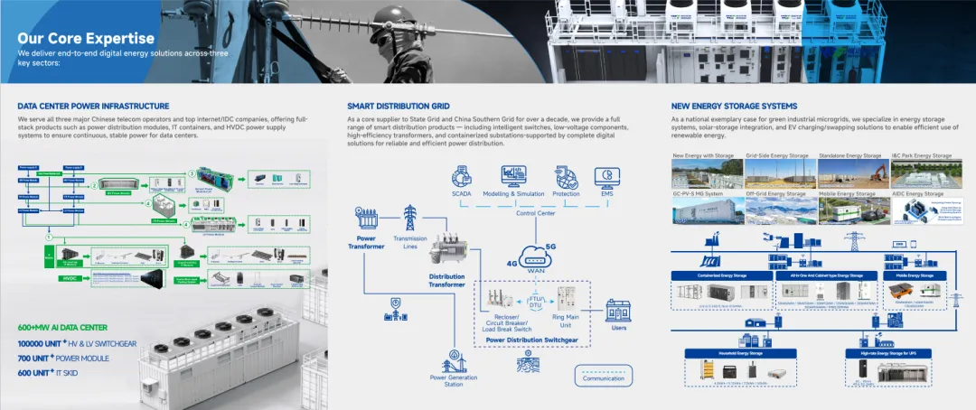 作为广交会的“老朋友”,惟远能源此次有备而来,重磅集结了数据中心、智能配电网、新型储能三大核心业务板块,并针对不同海外市场的应用场景与需求痛点,带来了一系列深度定制化的解决方案与高适配性产品。来自非洲、东南亚、中东、南美等地区的采购商、系统集成商及行业伙伴,对公司展示的高能效数据中心一体化供电方案、适应复杂环境的智能配网设备、以及针对户用及工商业场景的新型储能系统表现出浓厚兴趣。不少客商在现场进行长时间的技术探讨与方案对接,认为惟远的解决方案不仅技术先进、安全可靠,更具备出色的经济性与本地化服务潜力,能够有效帮助其所在区域应对能源结构转型与电力保障挑战。
