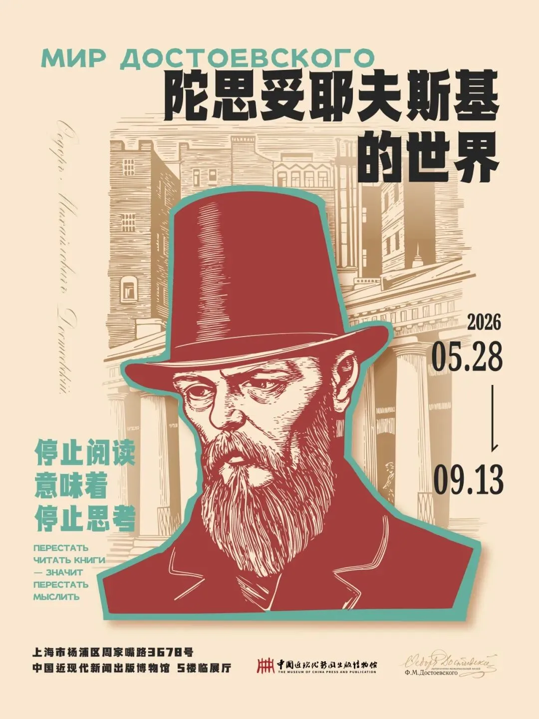 展览将于5月28日正式启幕,第二十八届上海国际电影节于6月12日开幕,让我们享受文学与光影双重盛宴,走进陀思妥耶夫斯基的世界,欢迎各位观众莅临!