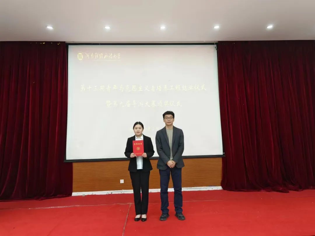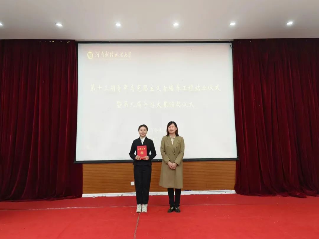 随后,第十三期青年马克思主义者培养工程优秀学员谭昕妤进行了心得分享。她表示,在未来的日子里,大家要坚定不移听党话、跟党走,自觉做马克思主义的坚定信仰者,做一个有远大理想、不忘初心,有担当、能吃苦的青年。最后,王莹对我院团学工作取得的优异成绩给予充分肯定。她指出,青马工程培训结课不是终点,而是新起点。她提醒同学们要树立终身学习的理念,以青年马克思主义的标准严格要求自己,积极投入到社会实践活动中去,乐于创新,提高自我修养,做出当代青年最好的成绩。