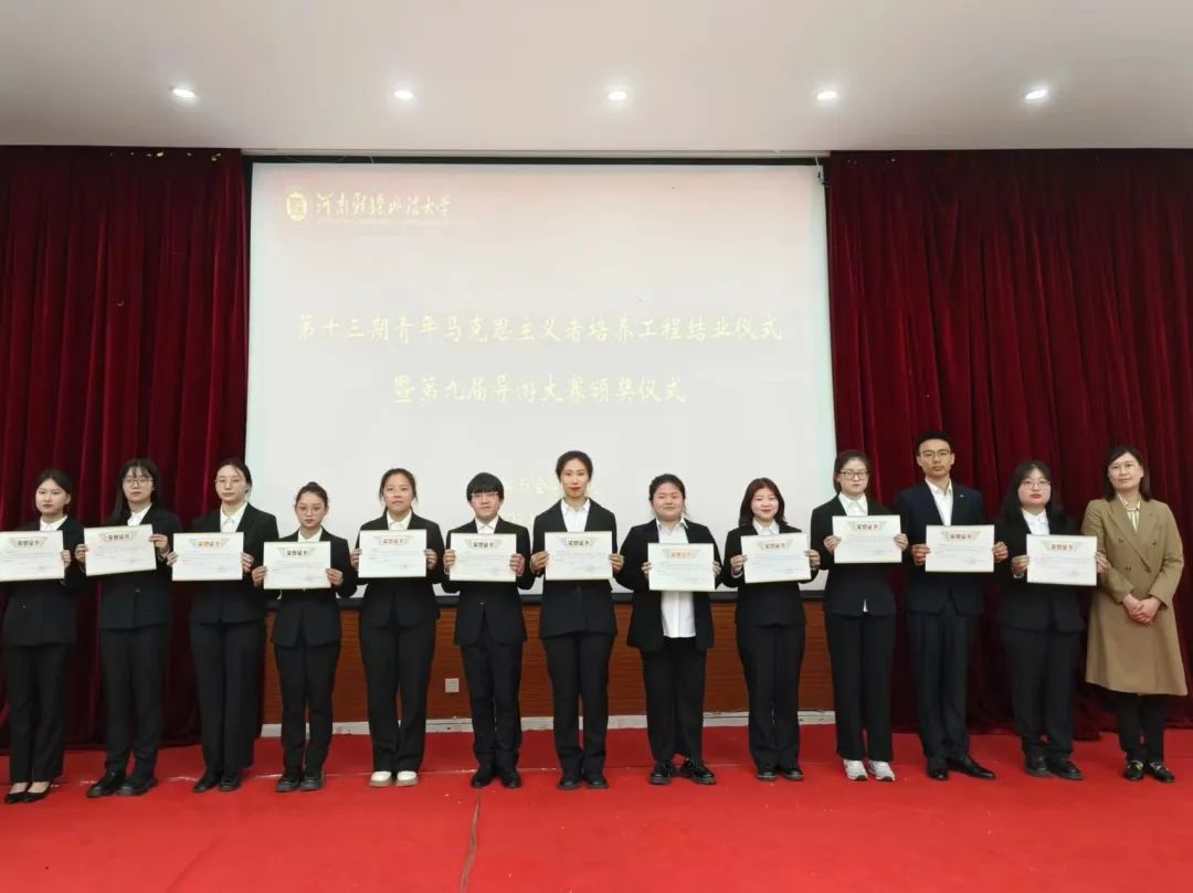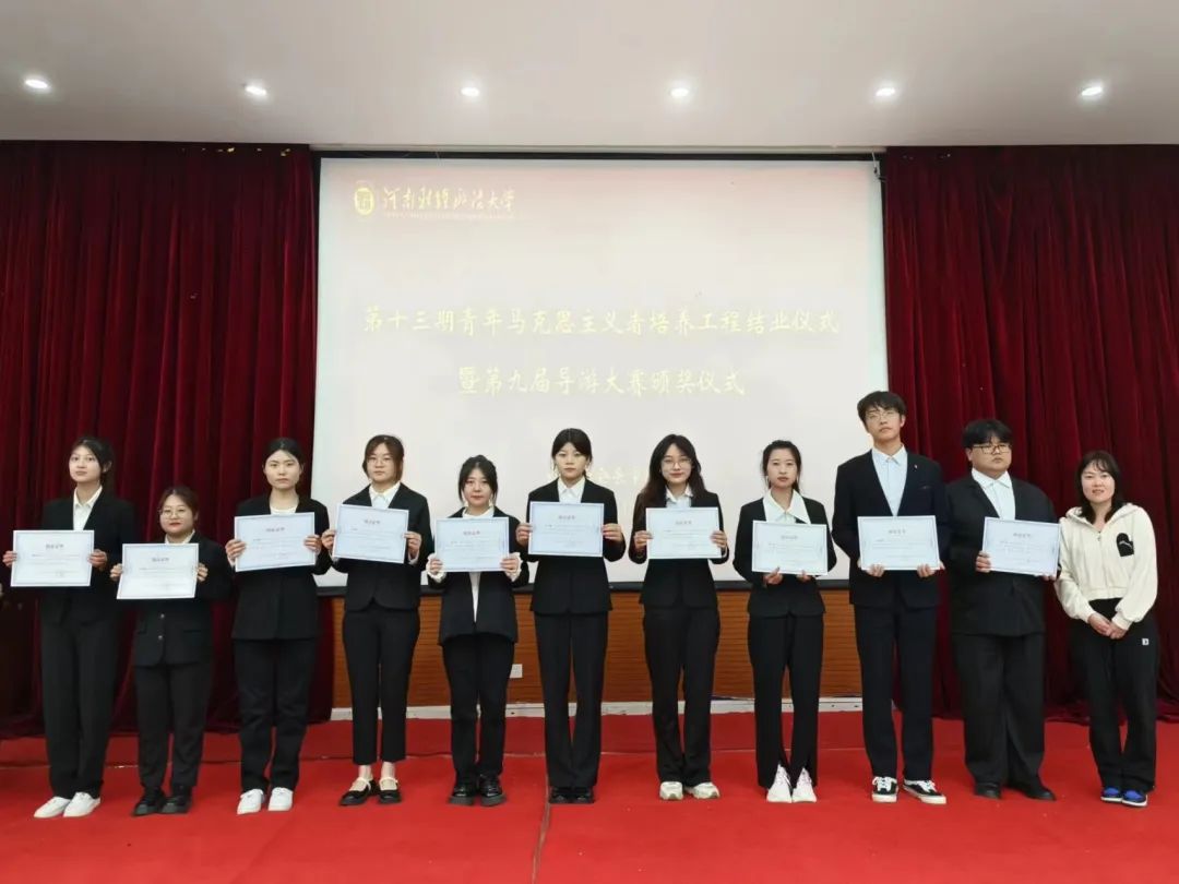 5月10日,旅游与会展学院于第一教学楼220报告厅召开第十三期青年马克思主义者培养工程结业仪式暨第九届导游大赛颁奖仪式,学院党委副书记王莹、团委书记蔡萌、团委副书记马超、兼职辅导员殷浩、刘雨濛出席会议,鲍亚姗担任主持人,我院青马培训班全体成员、主要学生干部及2022级学生代表到场参加。