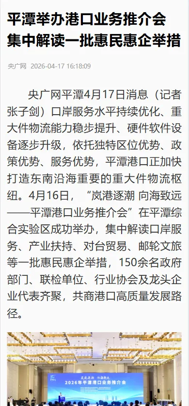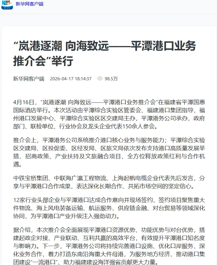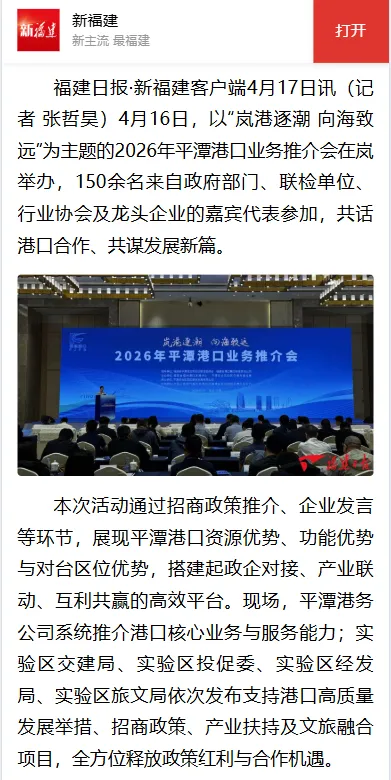 福建日报 新福建客户端-2026年平潭港口业务推介会举办