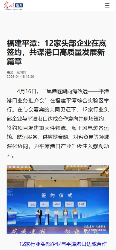 光明网-福建平潭:12家头部企业在岚签约,共谋港口高质量发展新篇章