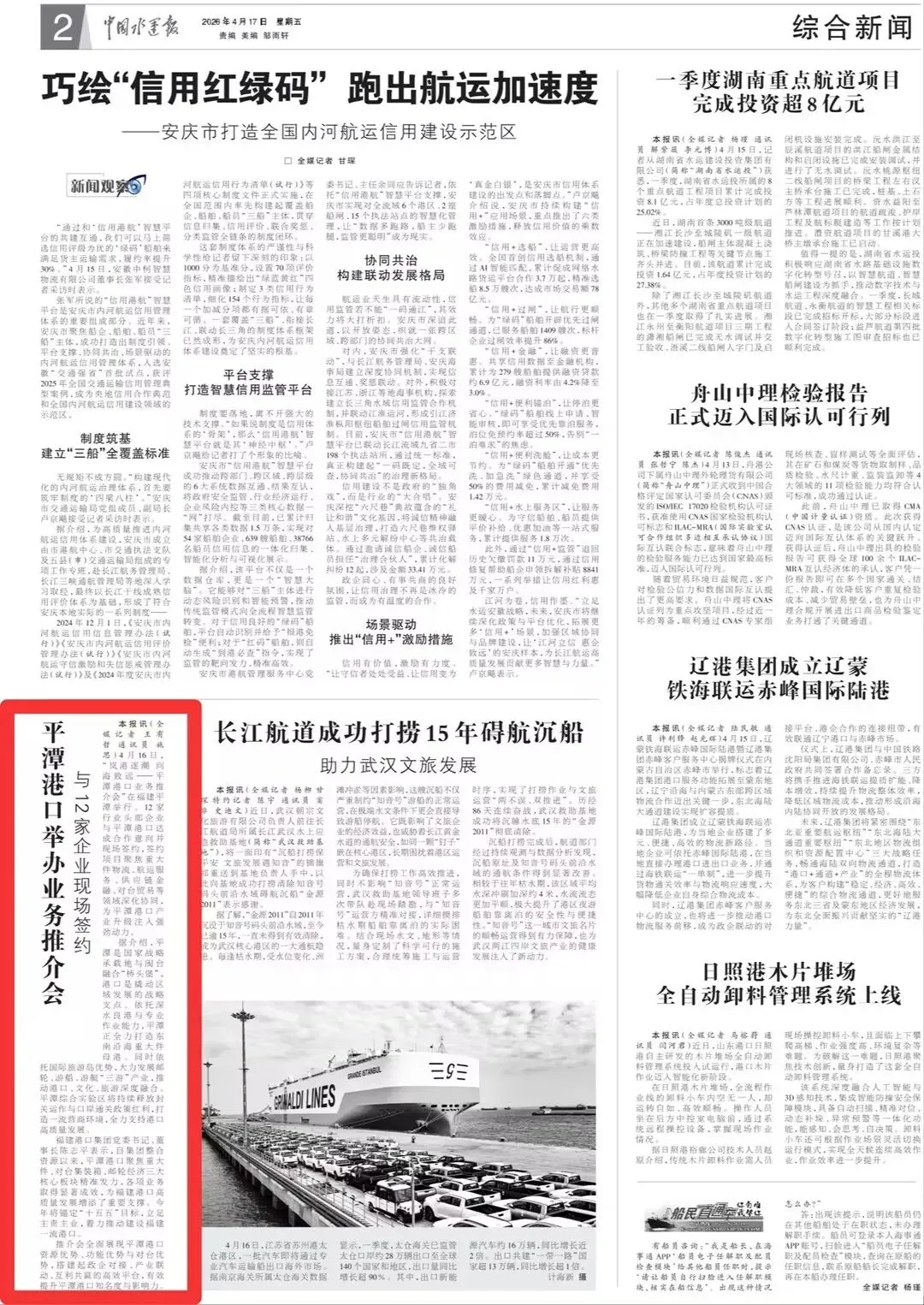 4月16日,由平潭港务公司承办的“岚港逐潮 向海致远——平潭港口业务推介会”在平潭成功举行。推介会后,活动获人民网、新华网、央广网、光明网、中国水运报、福建卫视新闻、福建新闻联播、福建日报新福建客户端等多家主流媒体集中关注报道。