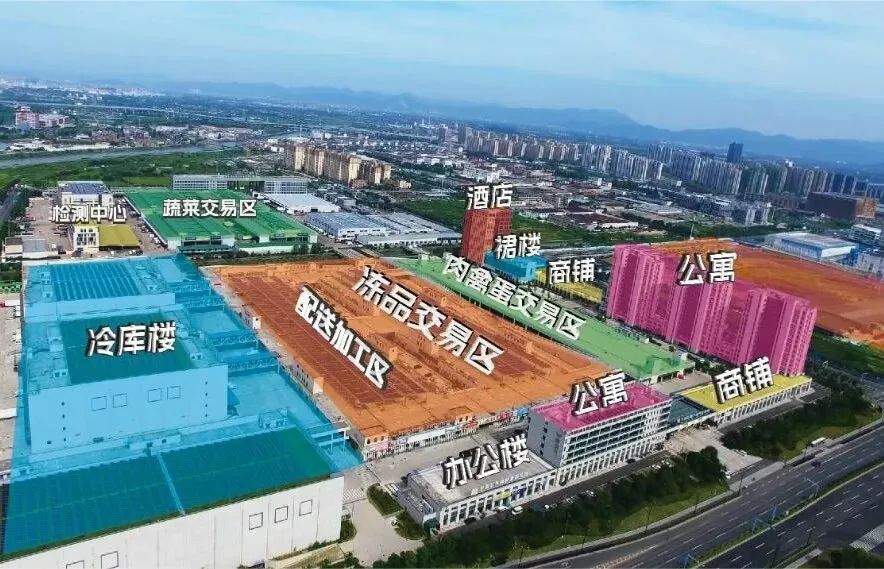 园区整体布局以“仓、配、销、加工”四位一体为导向,融合冷链仓储、冻品交易、产业加工、城市配送、智慧分拨、直播电商等多元功能,是集冷链物流与农副产品交易为一体的区域级流通与集散中心。