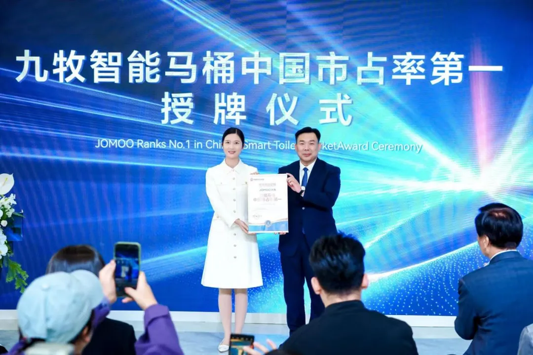 发布会期间,中国陶瓷工业协会授予九牧“智能马桶中国市占率第一” 地位认证,中国陶瓷工业协会刘挺理事长授牌。中国陶瓷工业协会副理事长侯文全解读称九牧作为卫浴家电化的先行者,在智能马桶等品类的技术研发、市场洞察、生产制造及售后服务等环节表现卓越。