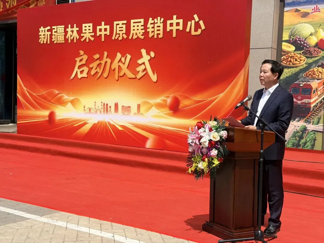 史耀星在致辞中指出,此次新疆林果中原展销中心揭牌落地,既是深化豫疆两地协作的重要体现,也是推动优质特色农产品互通共享的务实举措。漯河市委、市政府将以新疆林果中原展销中心揭牌为契机,全力支持豫疆两地经贸往来、产业协作、人文交流,深化与新疆果业集团全方位合作,携手打造豫疆农产品双向流通标杆平台,让新疆好果畅销中原,让漯河食品走进新疆。