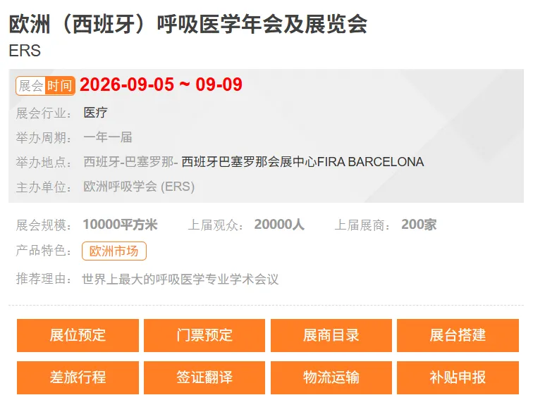欧洲(西班牙)呼吸医学年会及展览会