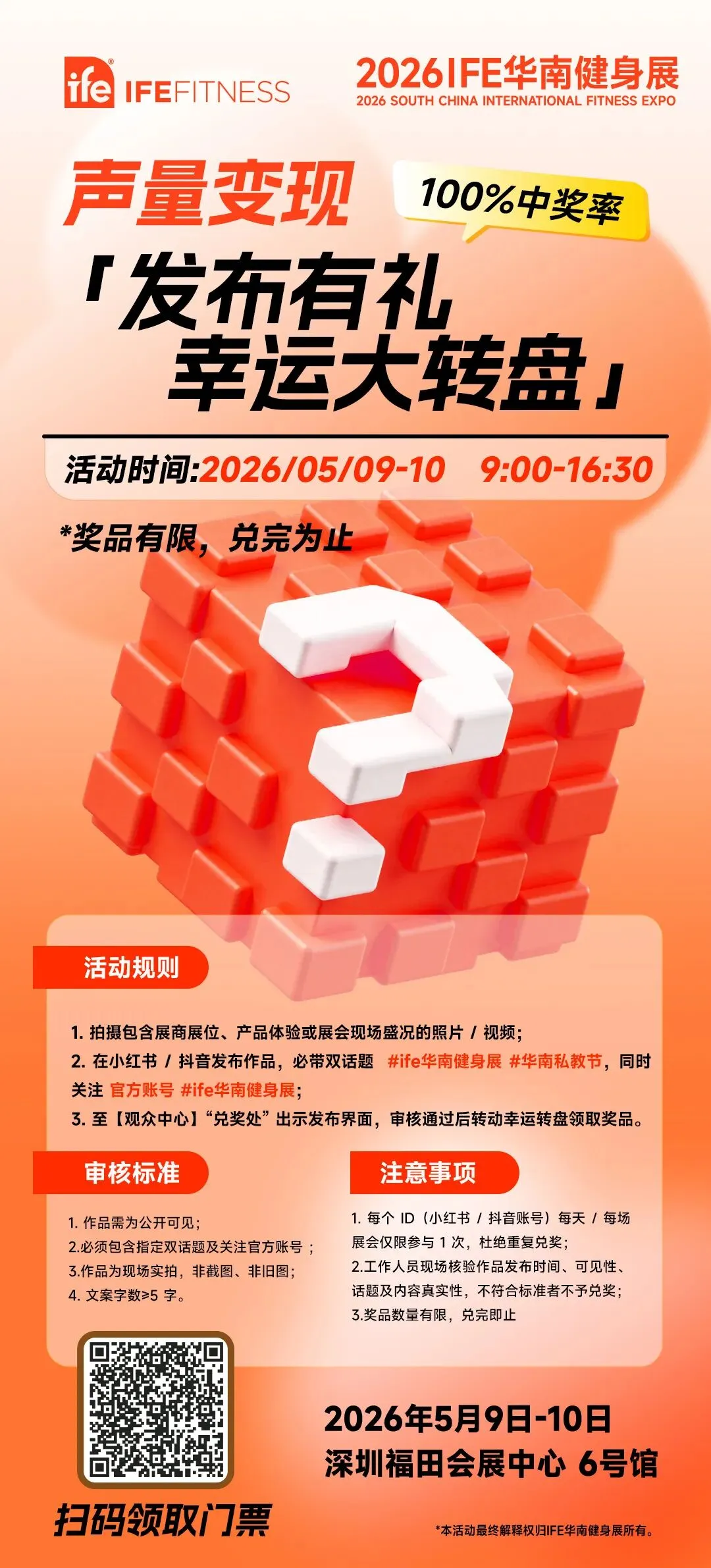 专业健身展也有快乐一面:集章打卡、发帖转盘,两个互动活动等你来玩!就在 IFE【观众中心】!