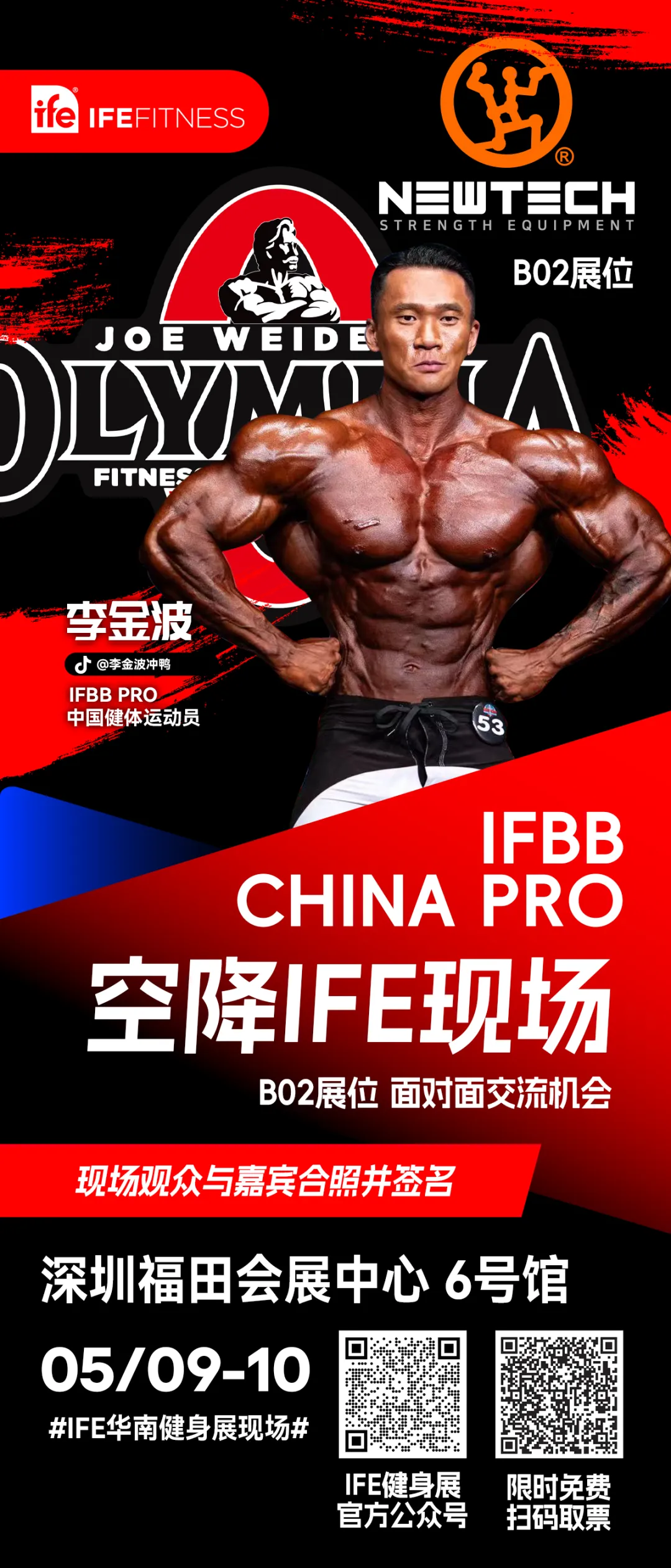 刘孟易&李金波,两位IFBB PRO同台助阵,锁定【NEWTECH】展位B02近距离感受冠军同款器械!