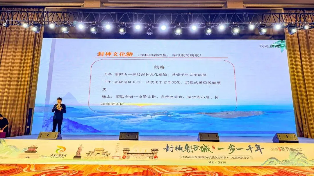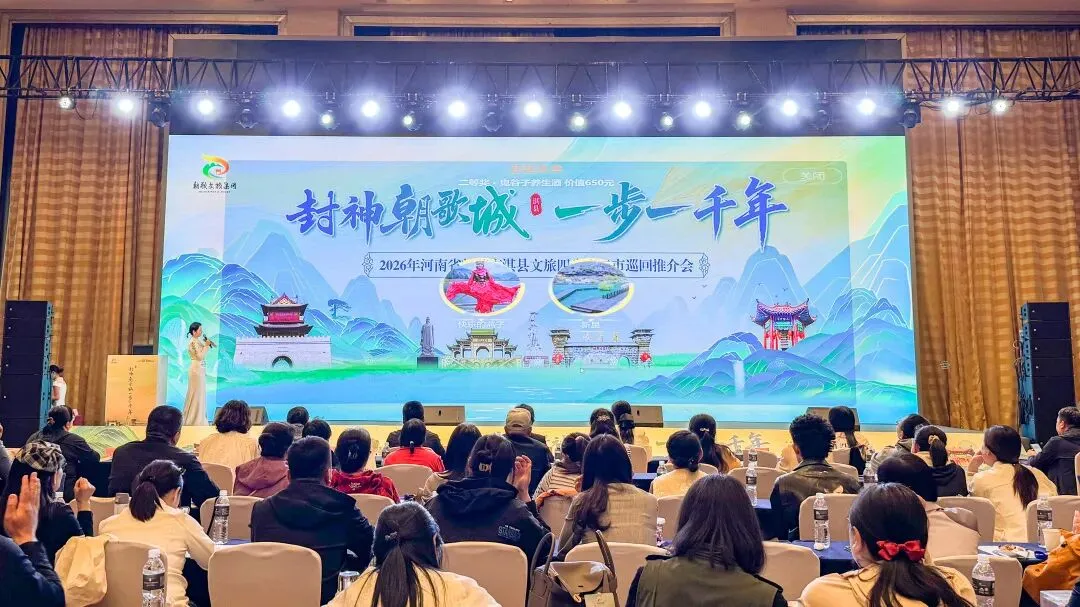 为深化冀豫文旅交流合作,拓展河北客源市场,4月20日,“封神朝歌城,一步一千年”2026年淇县文旅四省十二市巡回推介会走进石家庄。本次活动以文旅推介、文艺展演、现场签约、互动抽奖为载体,全方位展现淇县厚重历史文化与优质文旅资源,共话合作、共拓市场、共谋发展。