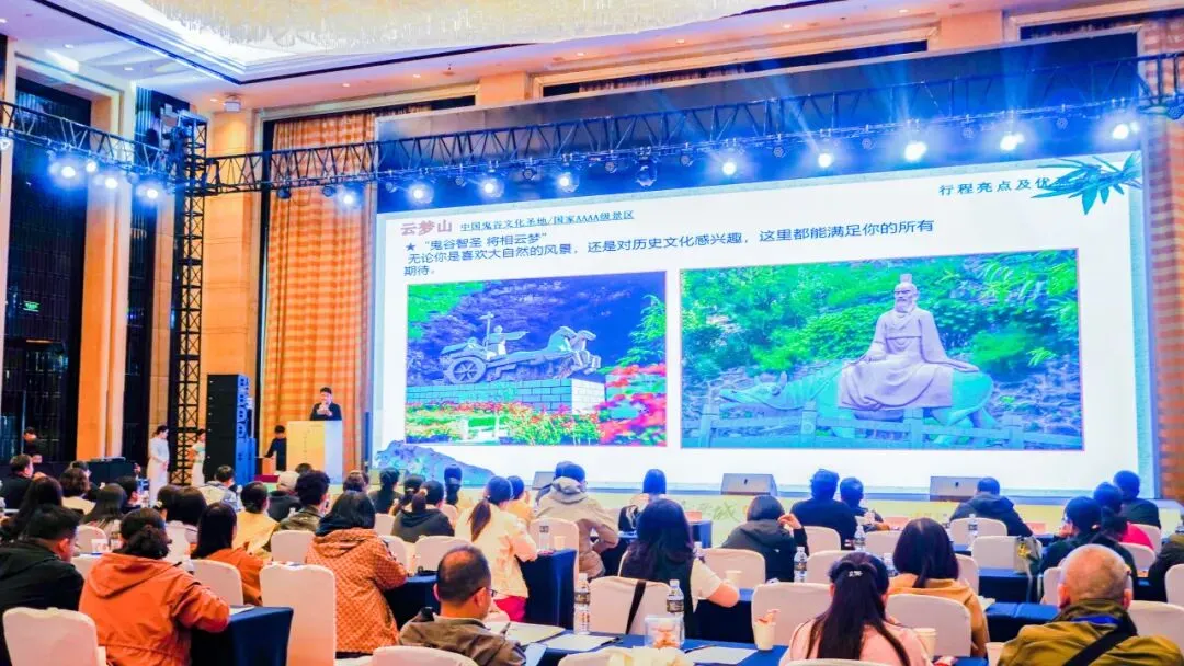 文旅推介环节,文旅推介官重点发布封神文化游、鬼谷研学游、亲子度假游三大主题一日游,及全域精品两日游线路,系统介绍云梦山、朝阳山、朝歌遗址公园、朝歌老街四大景区特色,并推出景区专属优惠政策,为石家庄市民及旅行社提供优质出行选择与合作机遇。