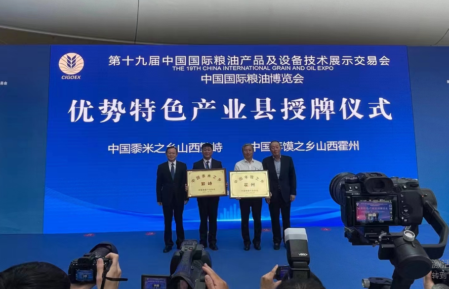 在优势特色产业县授牌仪式上,山西省繁峙县获“中国黍米之乡”称号,山西省霍州市获“中国年馍之乡”的称号。