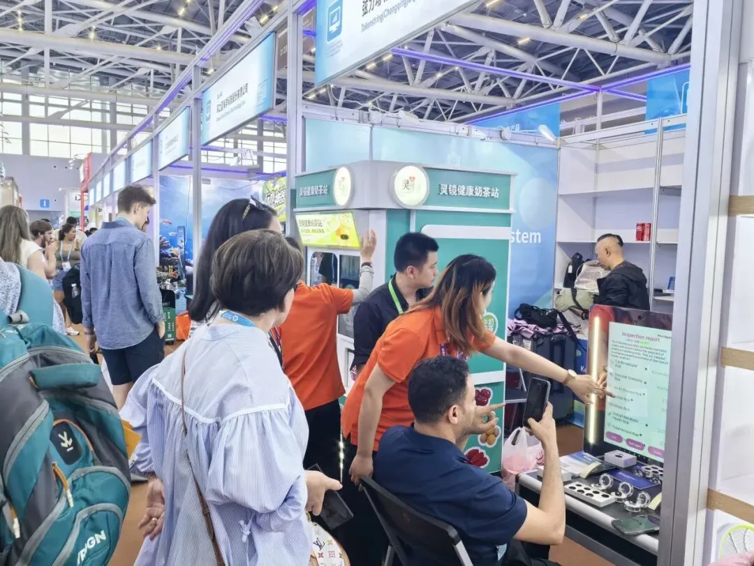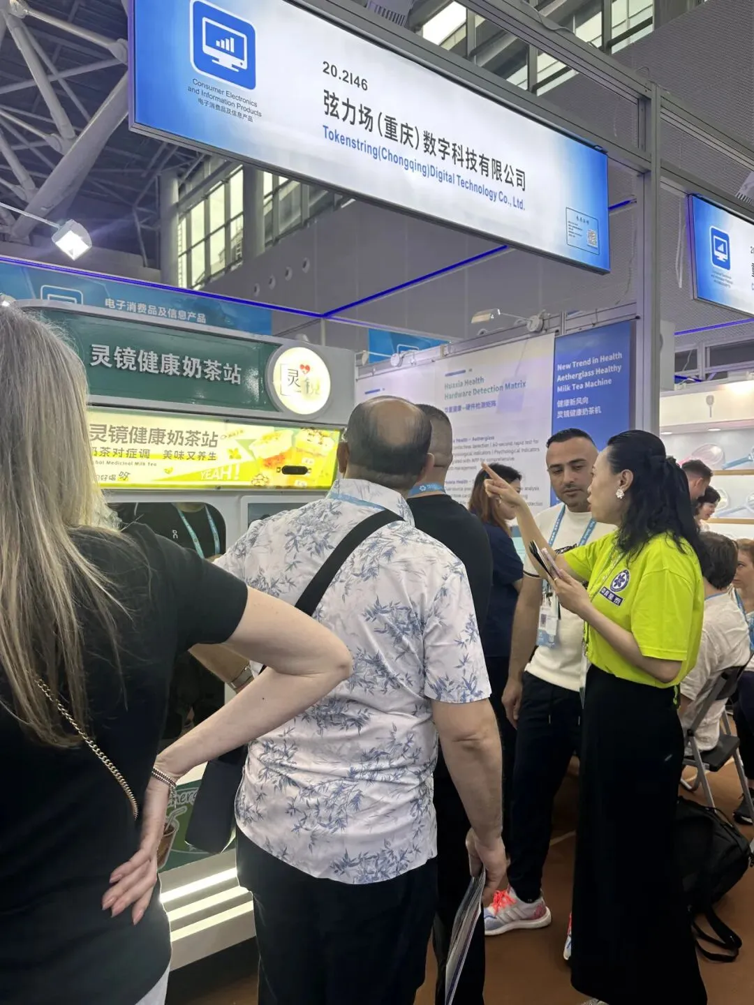 展会现场,弦力场同步展出灵镜、AI健康小屋、健康奶茶机、智能手表、体脂秤等全矩阵硬件产品。其中,灵镜依托rPPG无接触检测技术,60秒可速测30余项生理及心理健康指标,已在北京、山东、福建等地社区、医院、企事业单位落地应用;华夏AI健康小屋可在2—6㎡空间灵活部署,以轻资产模式提供慢病全周期监测与全链路服务,具备国家级实验室技术与临床验证支撑;健康奶茶机实现AI检测与个性化饮品方案结合,打造“一人一检、一人一方”的健康消费新场景。