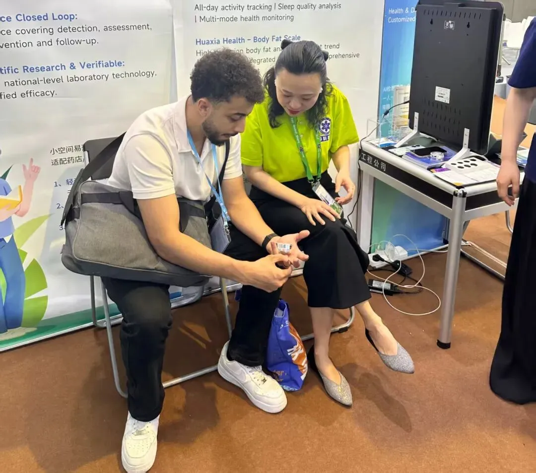 本次展会,弦力场以华夏健康大模型为智能中枢,构建“AI算法+硬件终端+场景服务+数据安全”的完整健康生态闭环,覆盖家庭、社区、药店、移动健康等多元应用场景,提供从监测、评估、方案制定到干预跟踪、慢病管理的一体化服务,全面展现中国AI健康科技的创新实力与全球化竞争力。