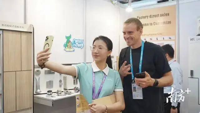 首次参展的陆丰泽业五金有限公司同样收获颇丰。“这是我们第一次参加广交会,三天加了300多个客户微信,100多位有明确意向,意向订单约60万元。”外贸业务员李洁指着展位上的无缝玻璃夹和三合一连接件介绍,公司带来了80多类产品,其中极简玻璃夹、感应灯带等新品最受青睐。“我们有十几项专利,生产线实现全自动化,效率提升30%,沙特、约旦、加拿大的客户咨询量最大。”