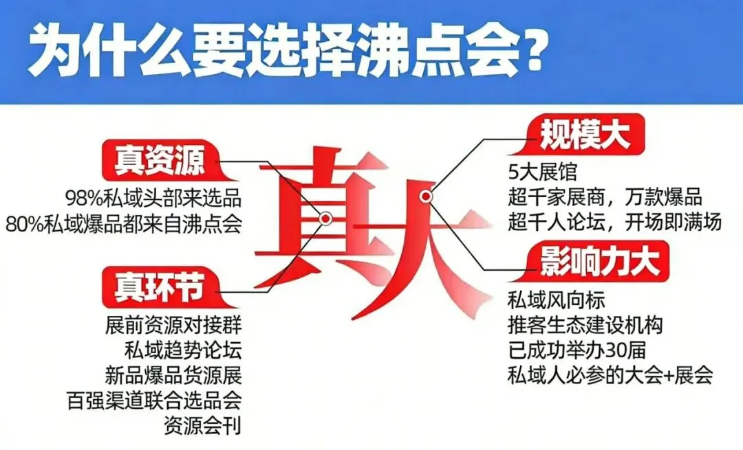 2026年5月28-29日,第31届沸点会·北京私域团长大会(夏季新品爆品选品会)将在北京·中国国际展览中心(朝阳馆)盛大启幕,这场以“向北方,抢市场”为主题的盛会,是供货商打通南北私域渠道、实现产品起量的关键契机。作为供货商,到底该怎么参加这场展会?这篇攻略一次性讲清,全程无冗余,手把手教你高效参展、精准对接。