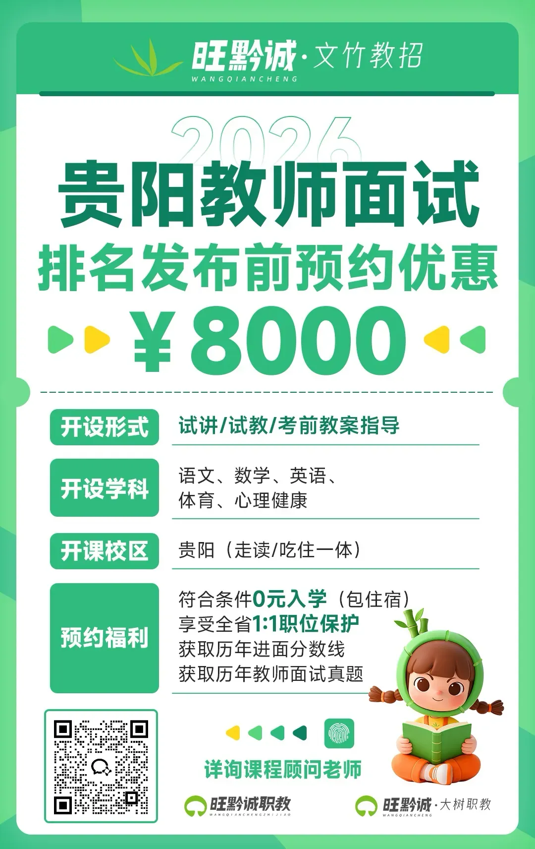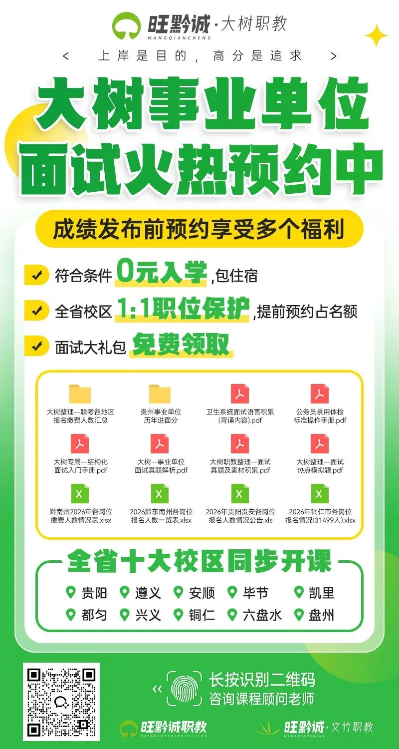 现在大树文竹教师面试课程正在预约中,扫描下方二维码联系课程老师咨询: