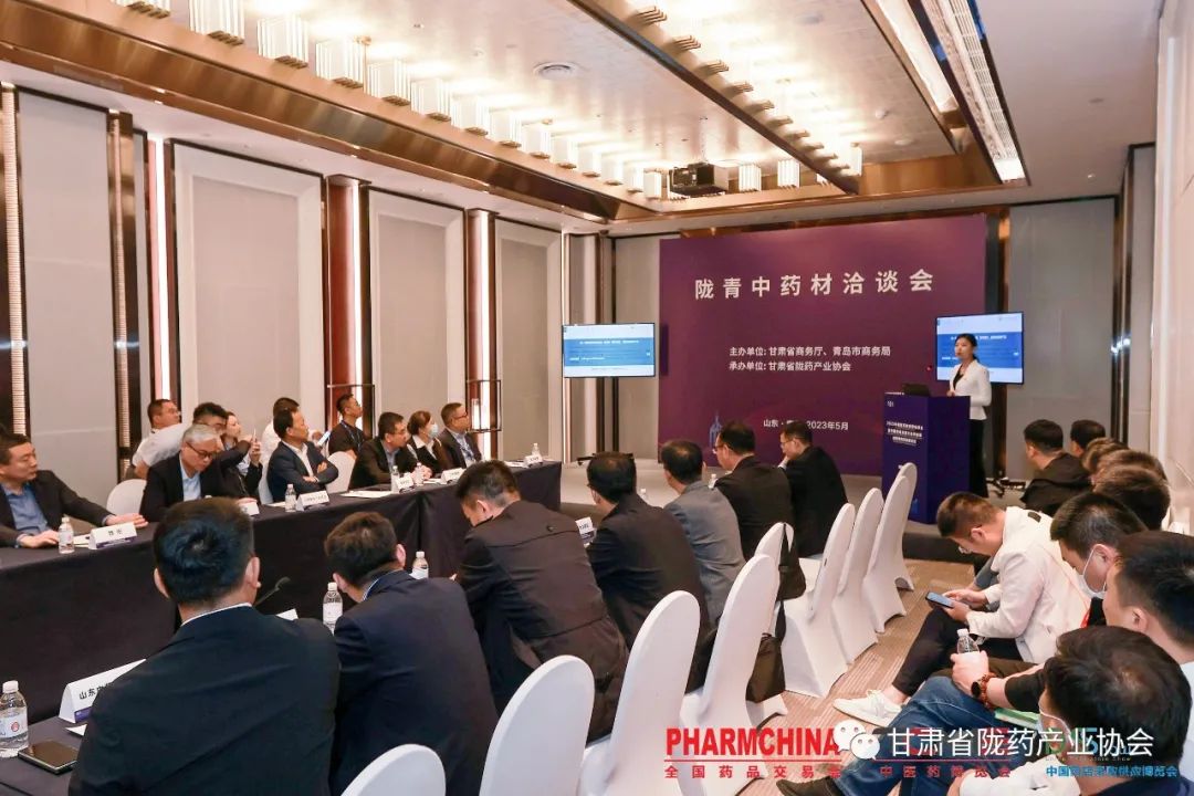 陇南市、定西市商务局进行了中医药产业特色优势、招商项目及优惠政策推介,甘肃陇神戎发药业股份有限公司、兰州佛慈制药股份有限公司、甘肃省党参研究院进行了产品推介;上海医药集团青岛国风药品有限公司、青岛格恩制药有限公司、青岛天成中药饮片有限责任公司做了采购介绍。