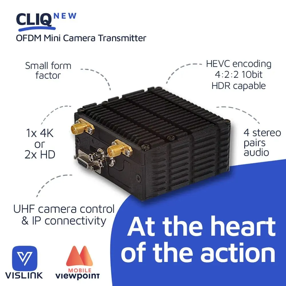 在射频方面,Vislink 展示其CLIQ发射器与Motion Impossible 的 Agito滑轨系统集成,稳定的电影级运动与广播级无线传输相结合,从而扩展现场制作的创作可能性。