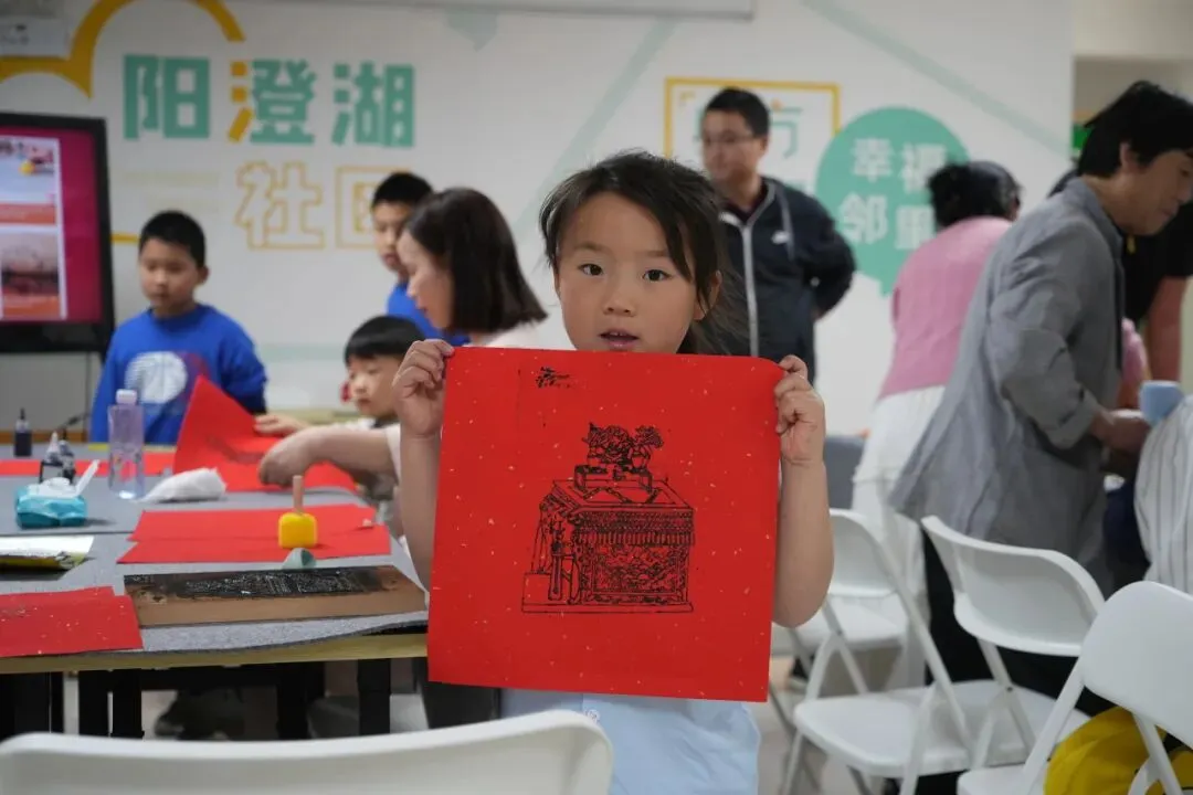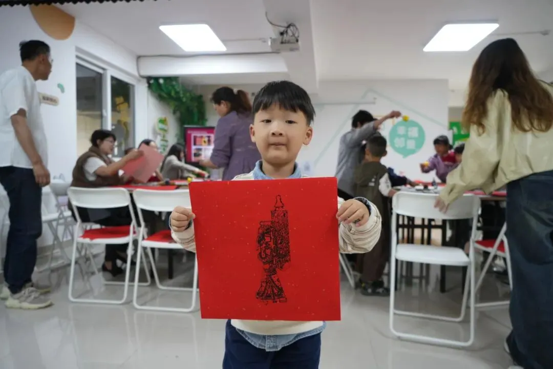 皮影拓印活动则以纸墨为媒,续写传统的另一种可能。居民们铺纸、匀墨、拓印,随着拓包起落,细腻的皮影纹样浮现于宣纸之上。一纸一墨,拓下的是纹样之美;一拓一印,传承的是岁月匠心。
