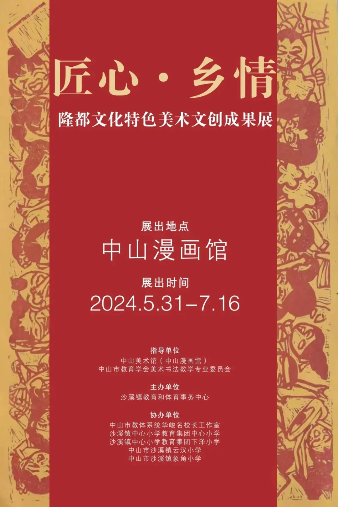 沙溪镇是文化之乡,这里蕴藏着多姿多彩的隆都文化。如传统的宗族祠堂文化,狮子舞、龙舞、鹤舞等民间艺术巡游文化,开门大吉民俗文化,沙溪传统饮食文化,以及后来的服装时尚文化、红木家具文化等。这些文化成为有乡土特色的人文景观,是香山文化的重要组成部分。为促进中山市沙溪镇义务教育学校高质量均衡发展,坚持传承中华优秀传统文化,立足“五育并举”,落实“立德树人”根本任务,沙溪镇举办“匠心·乡情”隆都文化特色美术文创作品展。本次展览以传承隆都民俗文化为宗旨,以“匠心·乡情”为主题,以师生版画、纸、景泰蓝、软陶和钉子画手工文创作品为主要艺术形式,共展出120多件精品力作,是一个综合美术特色教学研究探索性的展览。