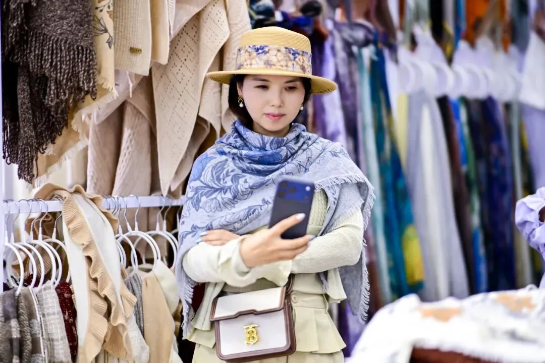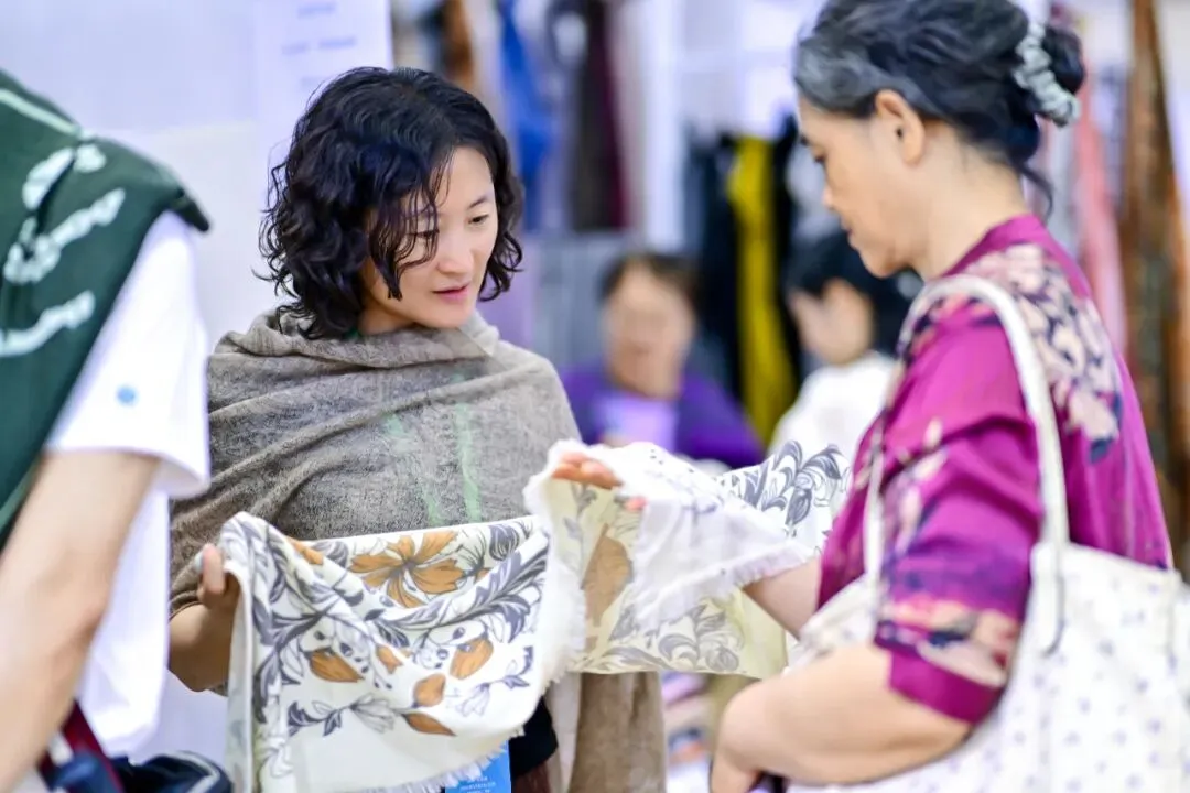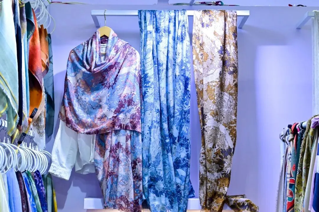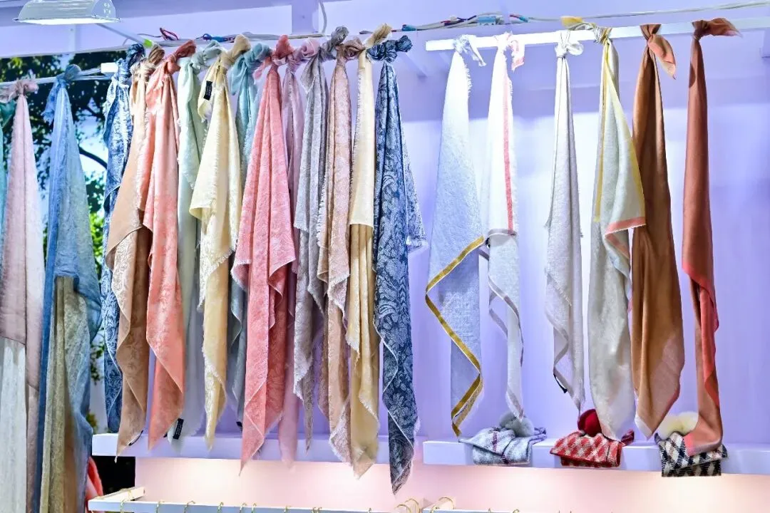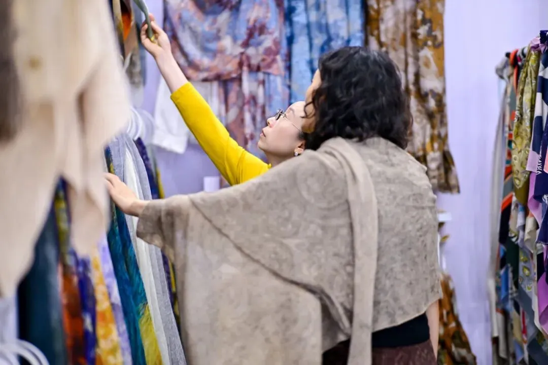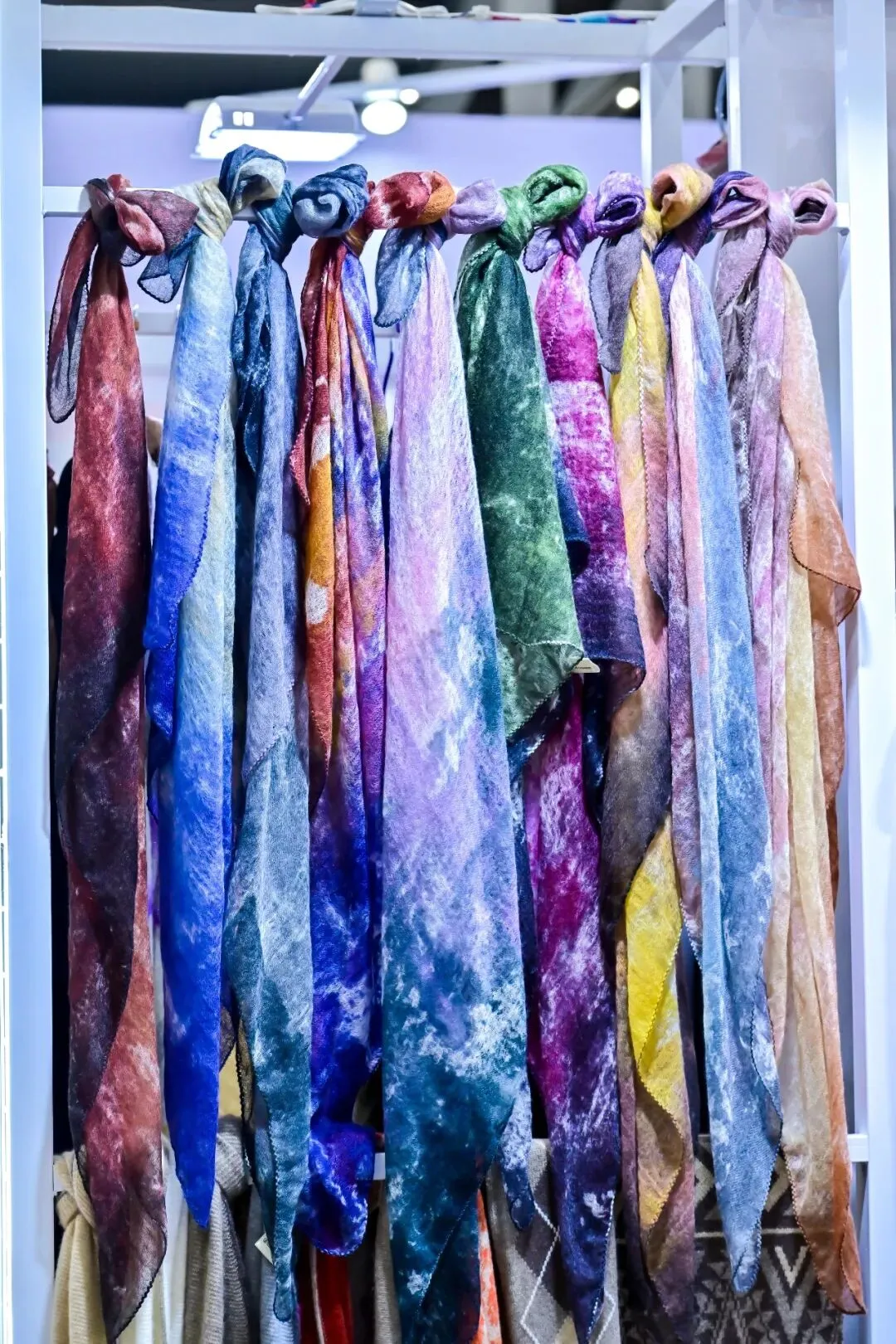 作为 2018 年成立、由大学毕业生团队主导运营的本土羊绒供应链企业,淳璞羊绒深耕呼和浩特本土产业,依托父辈多年行业资源,自建全链路生产体系,拥有自有梭织、针织双工厂,实现原料、染色、纺纱、织布、后整理一体化自主管控。本次展会现场客流稳定,新老客户纷纷莅临展位交流品鉴,深入了解我们的羊绒围巾、羊毛披肩全系列产品,以及现货批发、小单快反、小单定制等灵活合作模式,现场咨询不断、意向客户储备充足,参展效果远超预期。