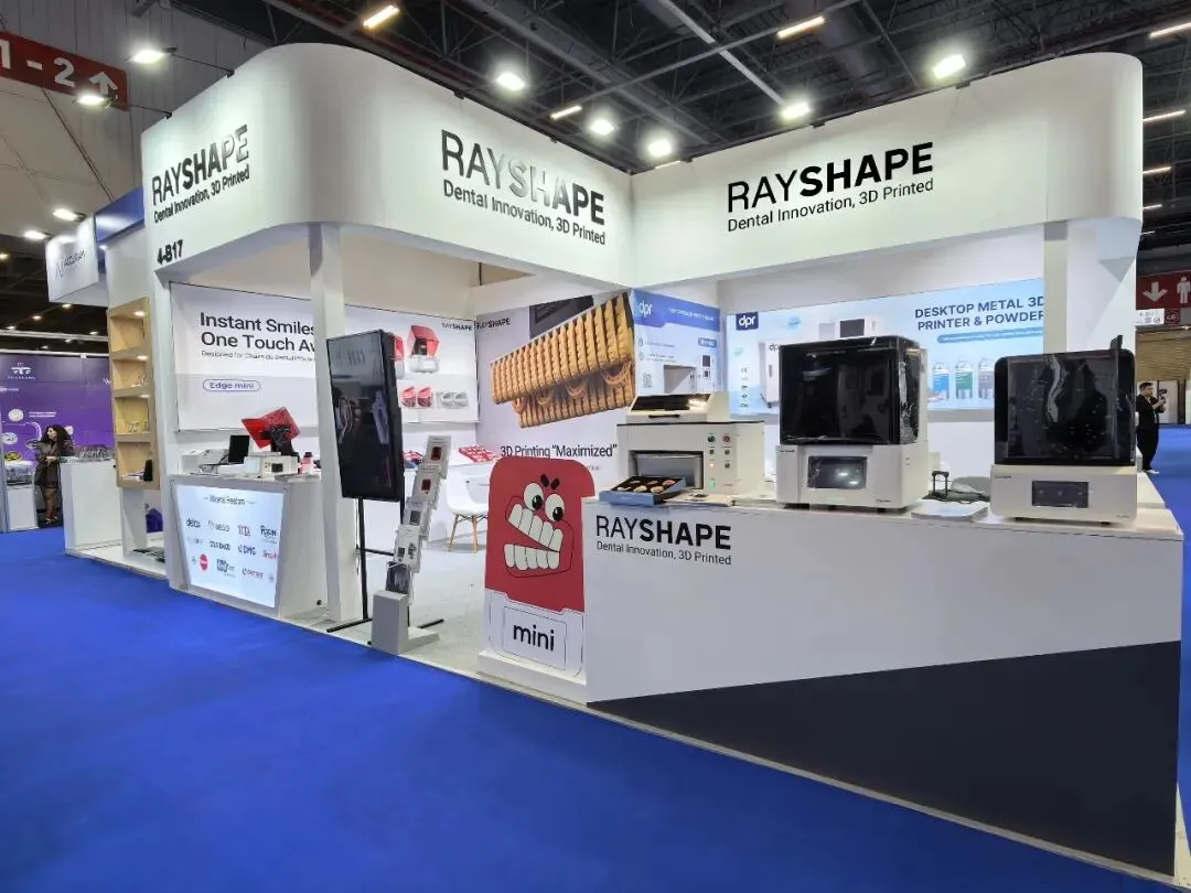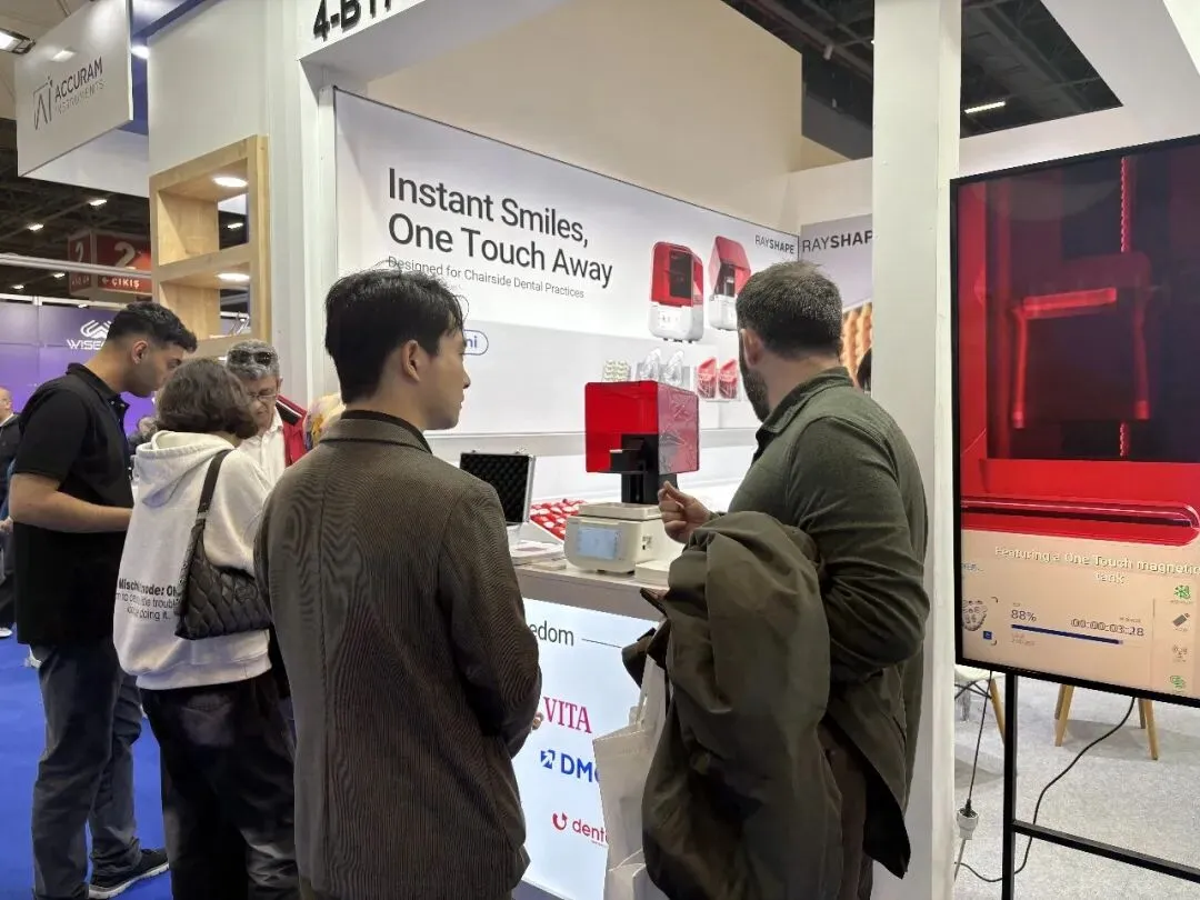 展会期间,铼赛智能(RAYSHAPE)携创新椅旁技工所数字化齿科解决方案亮相,吸引了来自多个国家的专业观众到访交流,围绕椅旁诊所数字化与牙科技工厂生产应用展开深入探讨。该方案以“一站式、高效率、稳输出”为核心优势,成为现场最受欢迎的解决方案之一。