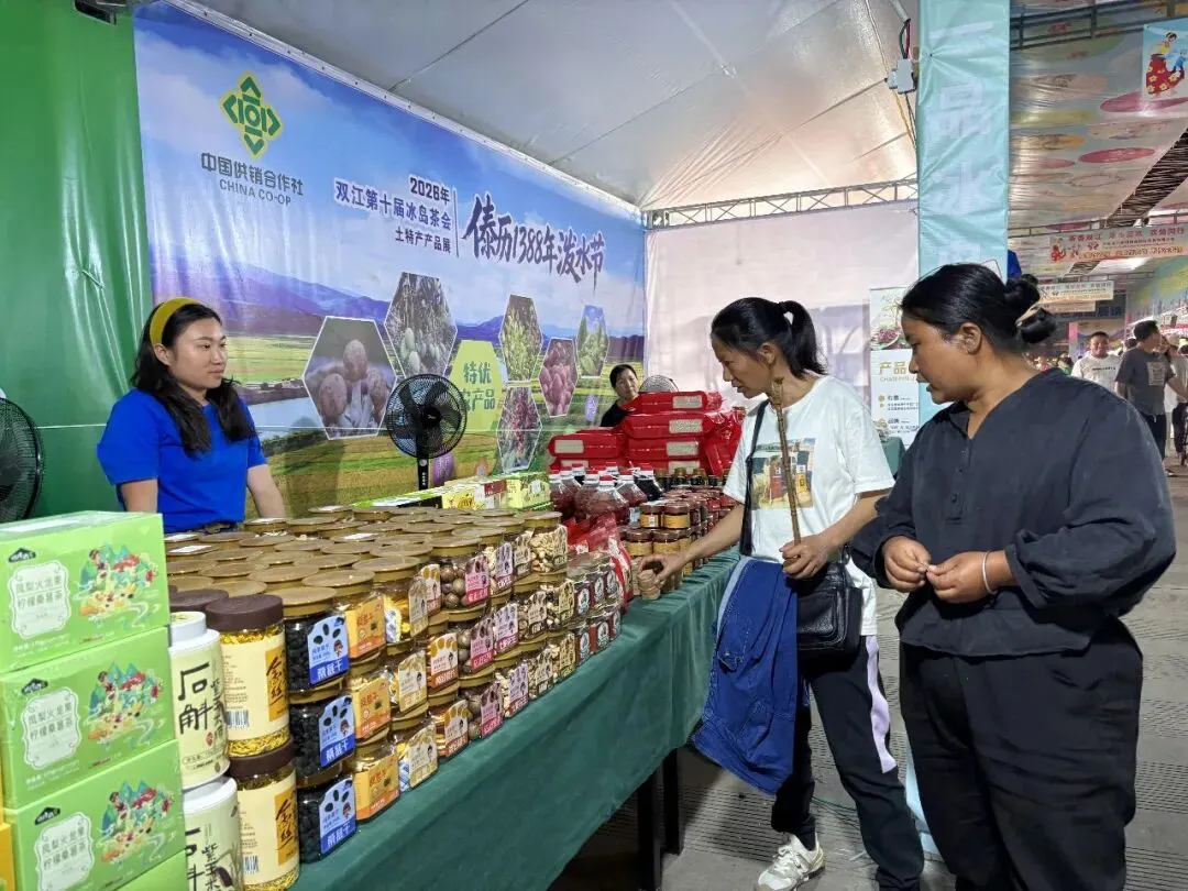 在双江县第十届冰岛茶会暨傣历1388年泼水节期间,我县举办集农特产品、非遗手作、民族美食于一体的特色商品展销活动,各类特色好物集中亮相、琳琅满目,吸引各地游客与各族群众慕名而来,在逛展、品鉴、选购中共享节庆喜悦,活动以节为媒激活消费活力、畅通产销渠道,为乡村全面振兴注入源源不断的动力。