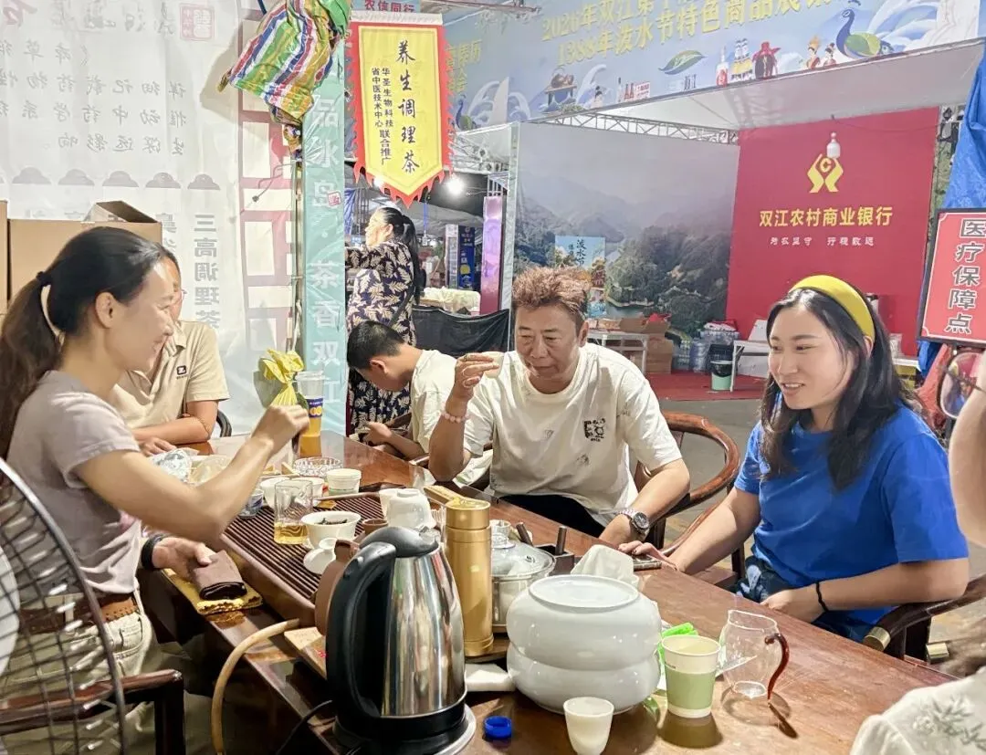 在品茗展区,不少游客围坐品茶,在一杯杯清茶中感受双江好茶的独特韵味,大家以茶为媒,共叙茶缘,共话佳节。