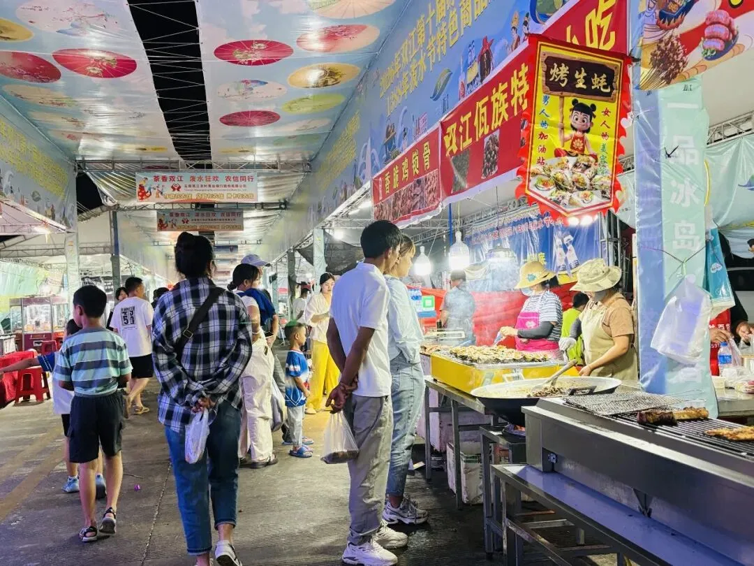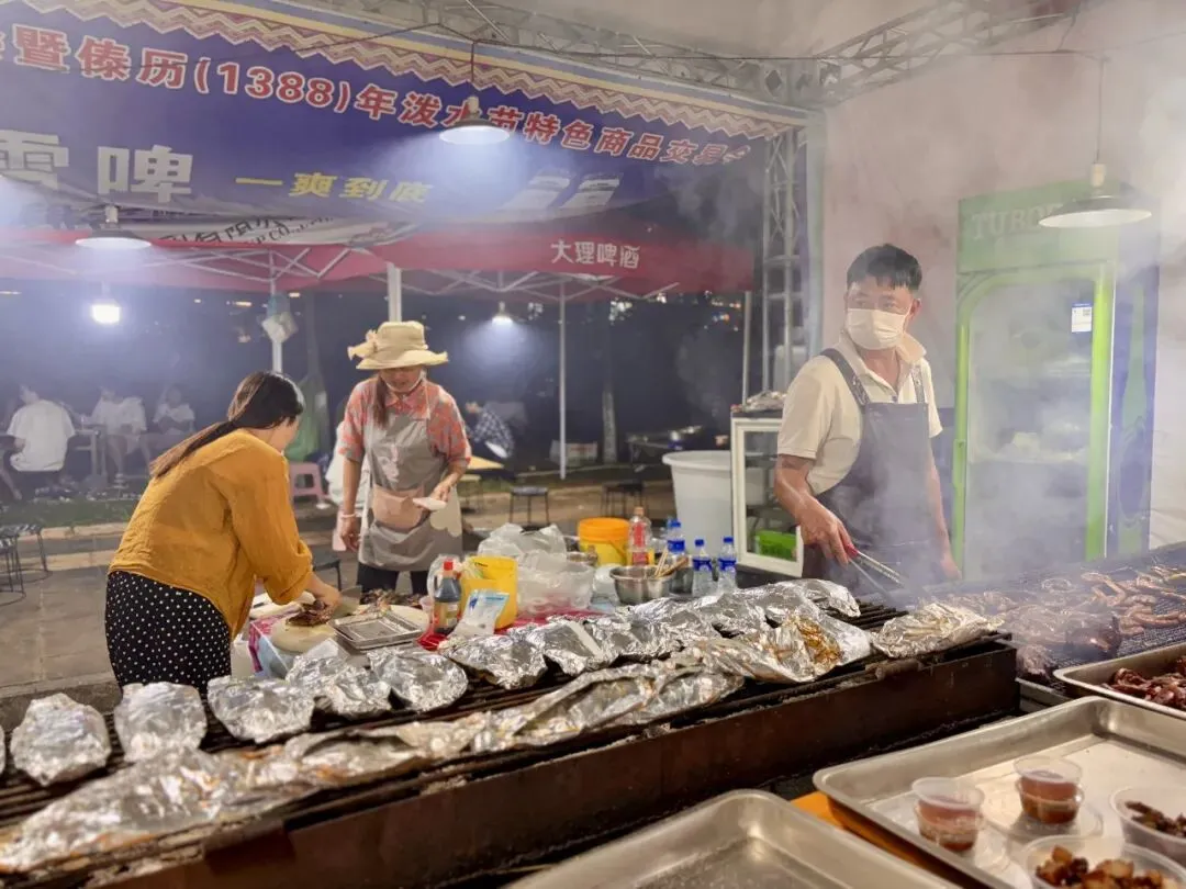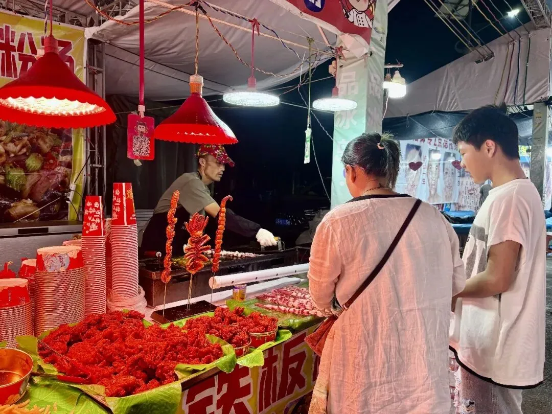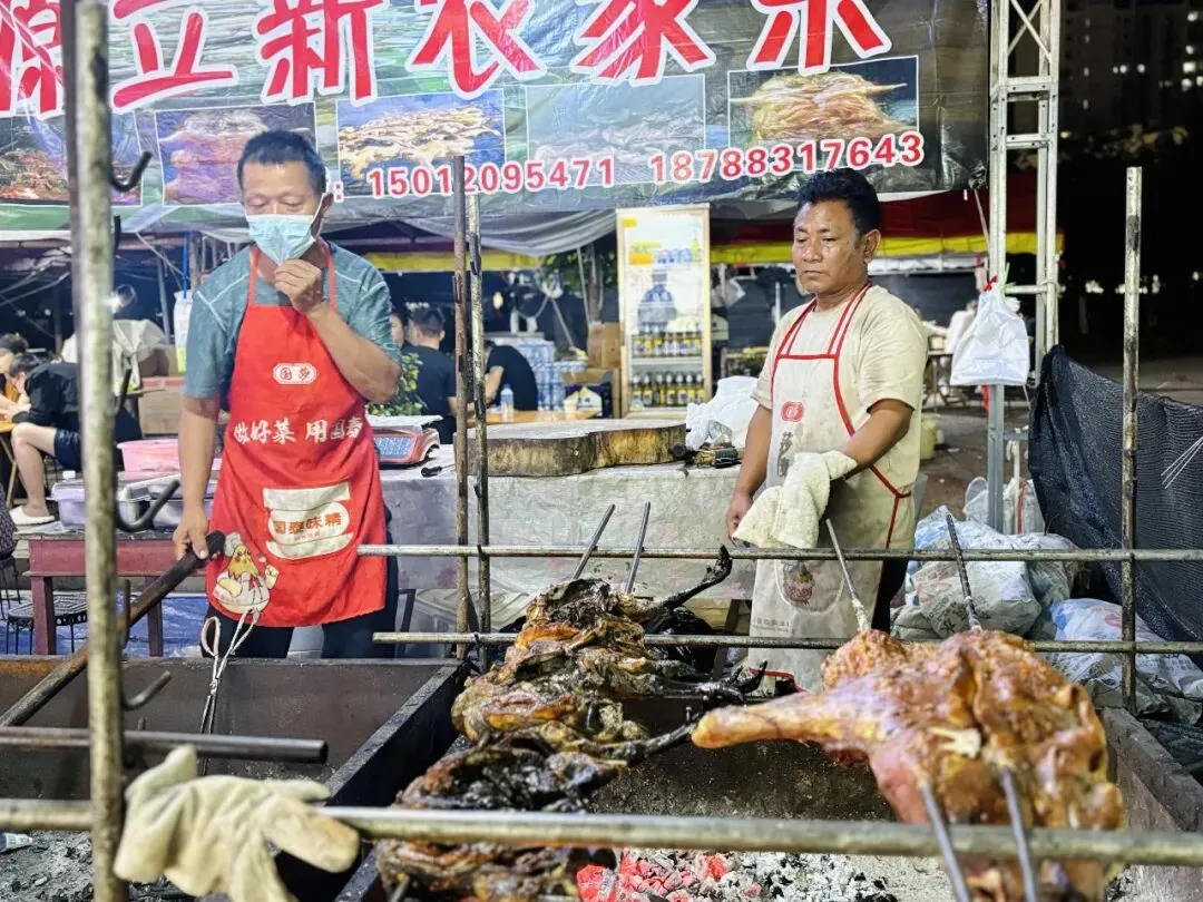 另一边,特色小吃一条街堪称展销现场的人气焦点。烤鱼、烤鸡、砂锅饭、牛干巴等特色美食香飘四溢,不仅为大家带来视觉与味觉的双重享受,更让不少游客流连忘返、大呼过瘾。每个展位前都人气爆棚、热闹非凡,成为节日里一道充满烟火气的亮丽风景线。