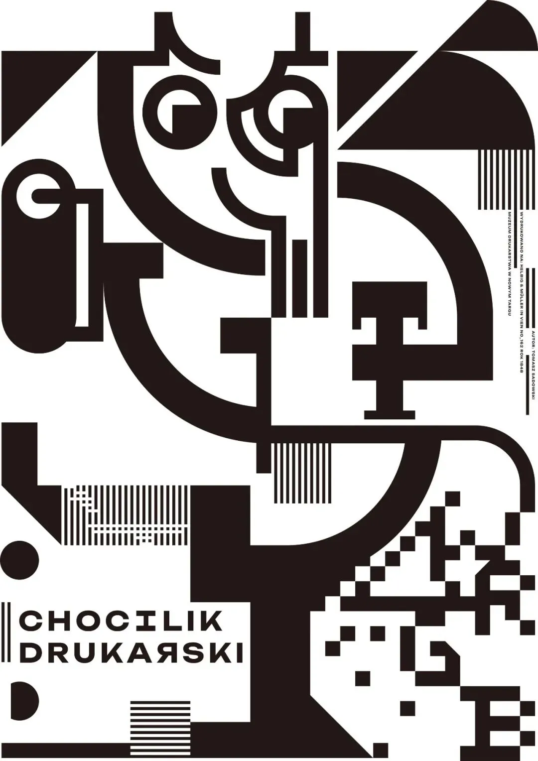 随着数字设计与现代印刷技术的发展,这只小鬼有了更多制造麻烦的机会。如今,它不仅能干扰传统字体排版,还能潜入文件、图层、像素、参数设置与自动化制作流程。我的创作诠释,是塑造一个当代版的印刷小鬼——它紧跟时代精神与技术进步,却依旧是印刷工人与设计师工作中那份不可预知与趣味感的象征。这张海报同时也是为波兰新塔尔格印刷博物馆主办的“印刷日”活动创作的宣传作品。