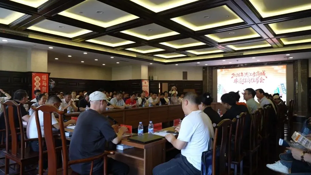 洪江区融媒体中心消息(记者:杨雪畅)4月19日,洪江古商城非遗招商推荐会在1915游客接待中心会议室举办。作为“非遗焕新•千年商城”——2026“非遗进景区”洪江古商城民俗文化主题活动之一,本次推荐会聚焦非遗活态传承与商业转化,吸引各地非遗传承人、文旅投资商、文创企业80余家代表参会,共商文旅产业合作新机遇。