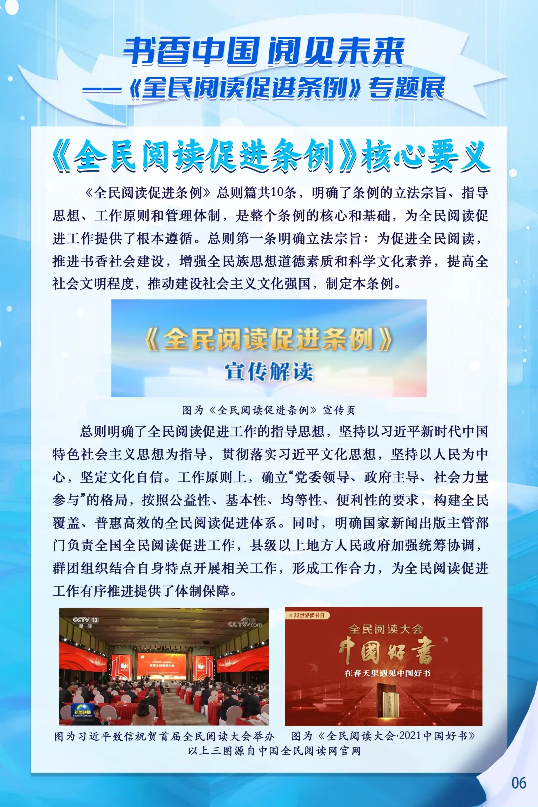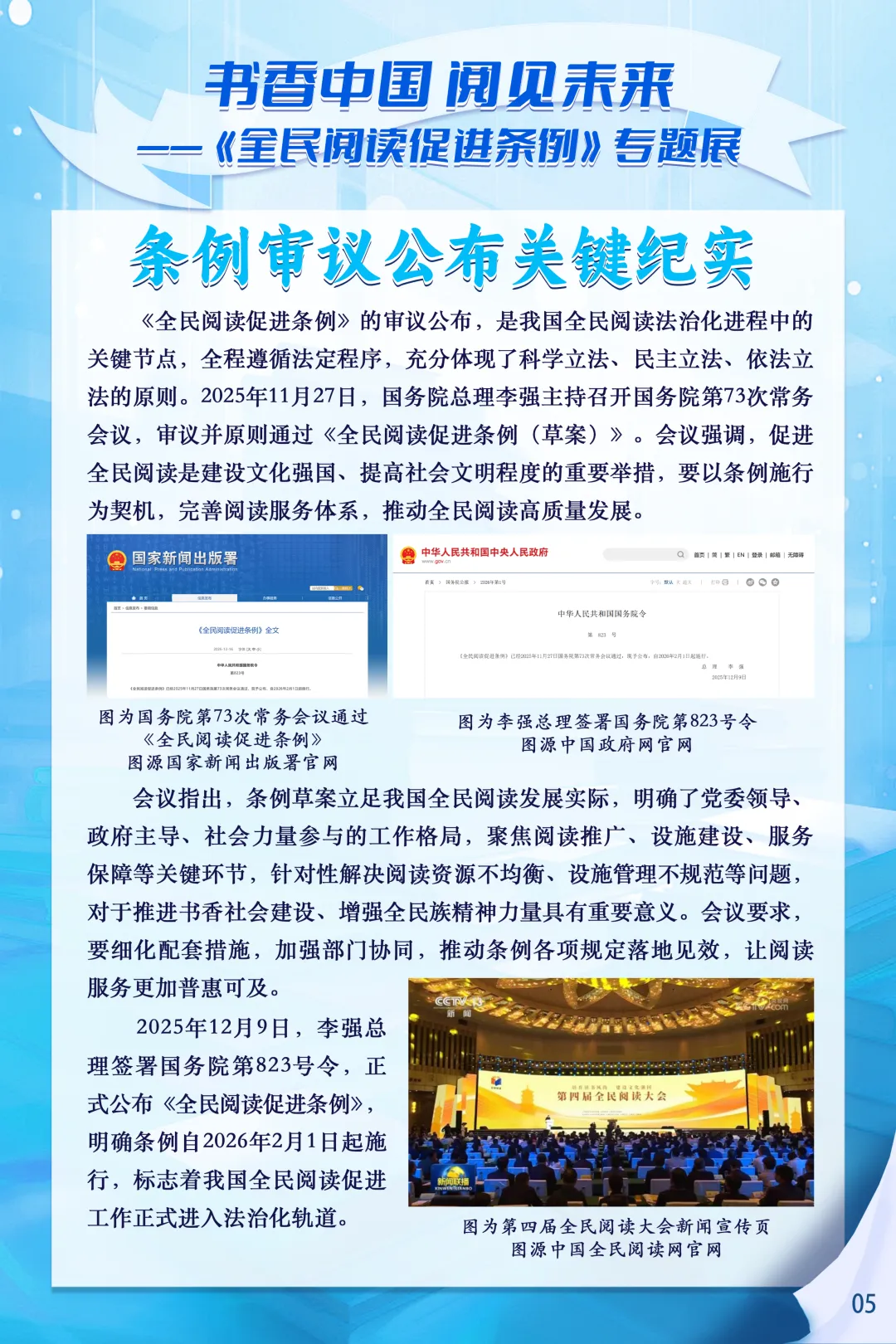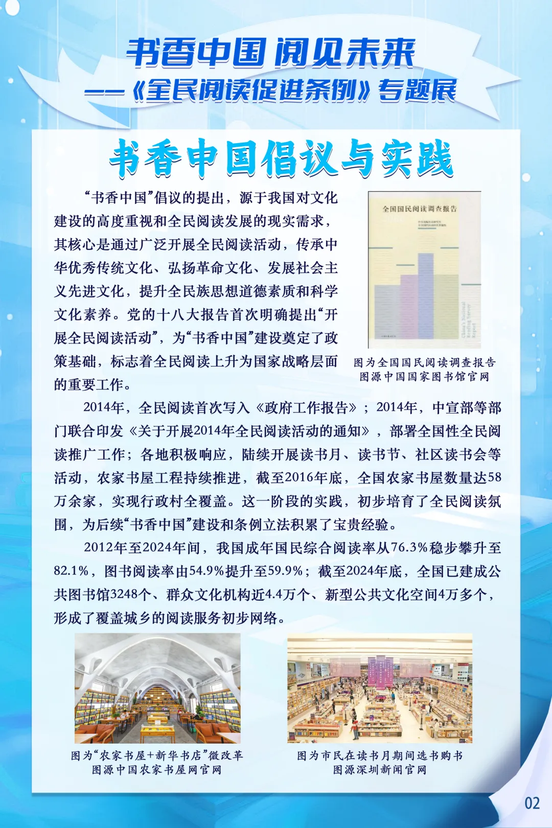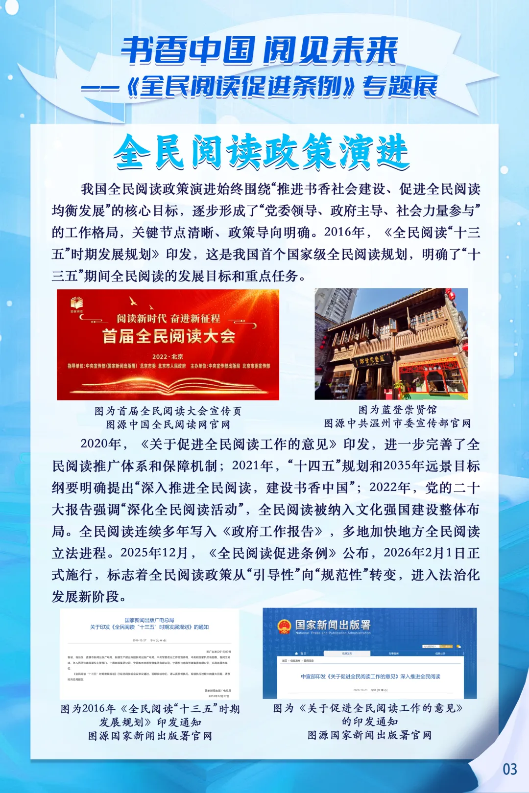 2026年2月1日,《全民阅读促进条例》正式施行,这是我国首部专门规范全民阅读促进工作的行政法规,为书香社会建设筑牢了制度基石。为深入推进书香宁夏建设,全面普及《全民阅读促进条例》相关知识,营造全民爱读书、读好书、善读书的浓厚社会氛围,宁夏图书馆特别推出书香中国-阅见未来—《全民阅读促进条例》专题展,让我们一起感受阅读的力量,见证法治化、规范化、常态化全民阅读新图景,让书香浸润塞上大地。